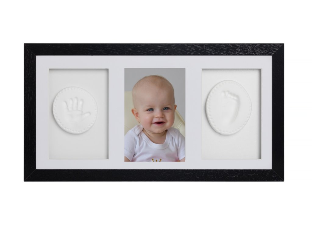 Sada na otisky nožiček či ručiček, trojrámek - dárková sada pro miminko - černá