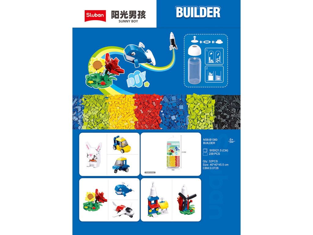 Objevte zábavu se stavebnicí Sluban Builder! Tato stavebnice 6 v 1, obsahuje 239 dílků, ze kterých si děti mohou postavit různé modely letadel, vozidel, ale také králíčka nebo květinuDíky kompatibilitě s dalšími stavebnicemi, včetně LEGO®, může Váš malý stavitel rozšířit svůj svět do nekonečných rozměrů