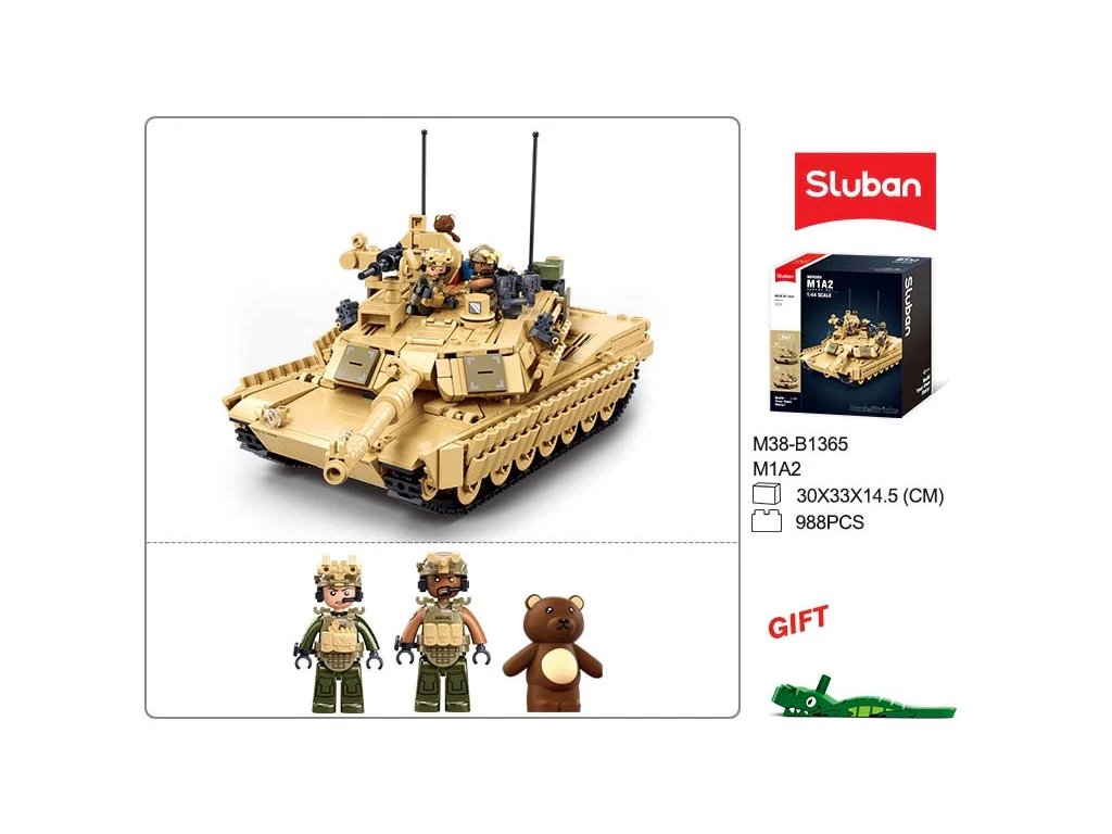 Stavebnice Sluban model Bricks M1A2 Abrams MBT představuje detailní model moderního amerického hlavního bitevního tanku M1A2 Abrams TUSK II, který patří mezi nejznámější a technologicky nejvyspělejší tanky současnostiTento model v měřítku 1:35 je sestaven z 988 kvalitních plastových dílků vyrobených z pevného a odolného ABS plastu, díky čemuž je konstrukce stabilní a vhodná i pro dlouhodobé používání