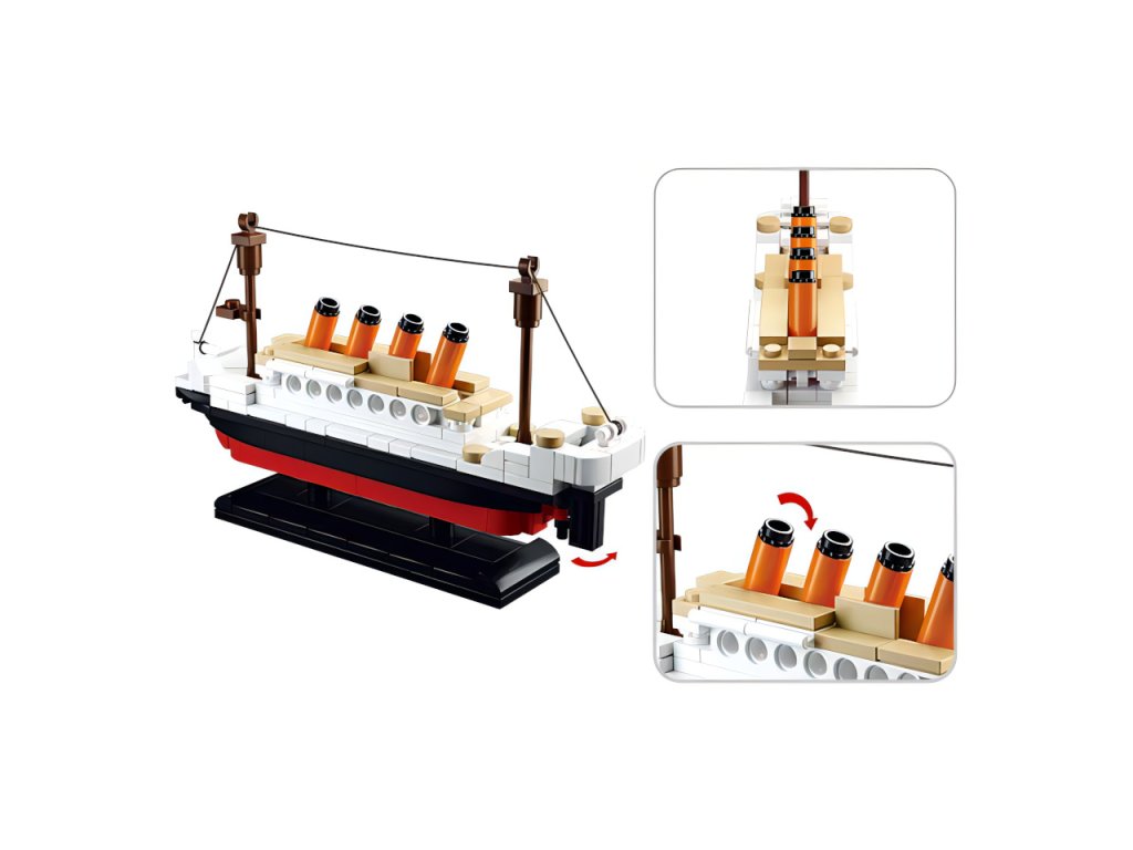 Tento nejmenší model ze série Titanic již sice nevyrazí na plavbu mezi Evropou a Severní Amerikou, ale jistě potěší malé námořníky a stavitele. Inovativní stavebnice Sluban je možno kombinovat s podobnými stavebnicemi mnoha dalších významných výrobců. Jsou vyráběny z kvalitního, nezávadného a odolného ABS plastu. Každá stavebnice je opatřena návodem k sestavení a balena v pestře potištěné papírové krabičce.