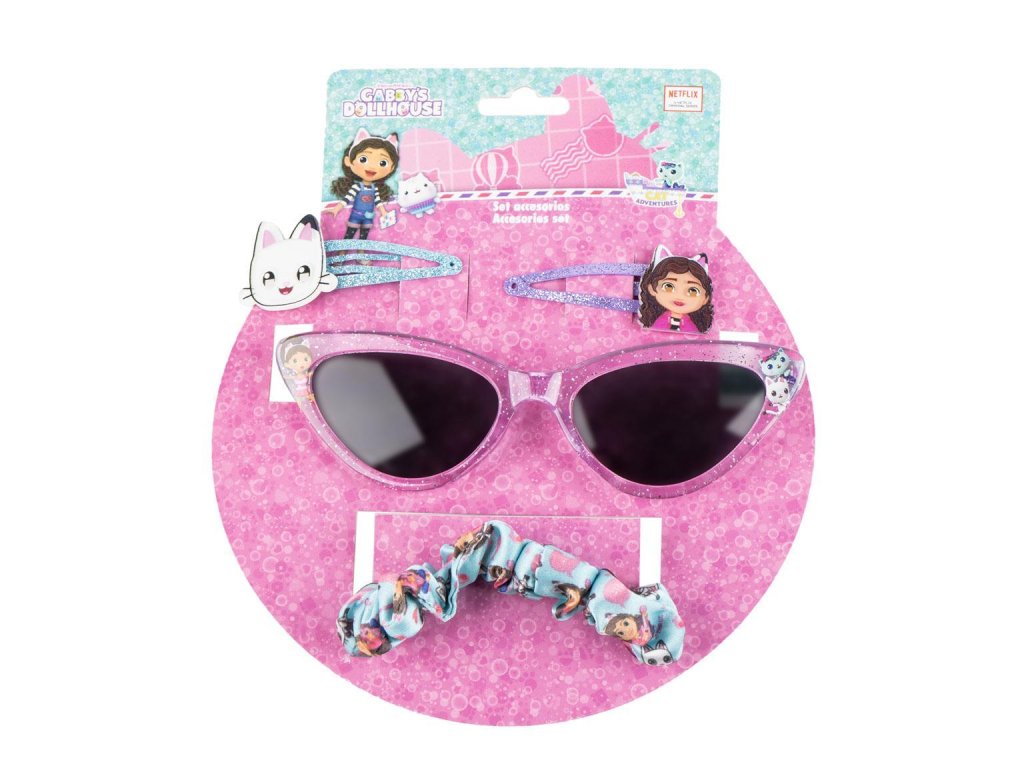 Souprava 2 gumičky, 2 sponky a sluneční brýle s motivem Gábinin kouzelný domek. Rozměry balení: 17x 15x2 cm. Pro děti od tří let, obsahuje malé části. Brýle: 100% UV ochrana. Výrobce: Cerda. ARTESANÍA CERDÁ, S.L. E-46850 LOleria, Valencia, Spain info@cerdagroup.comDoplňkové parametry