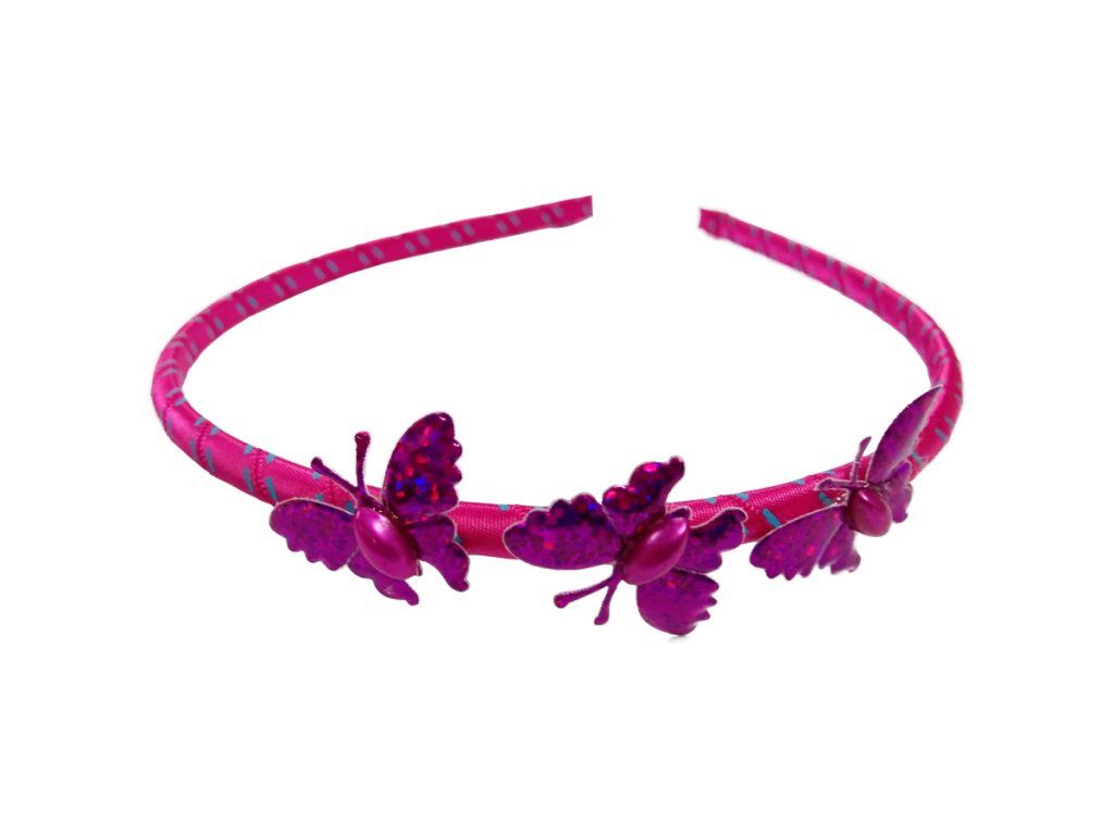 Čelenka do vlasů růžová s motýlky