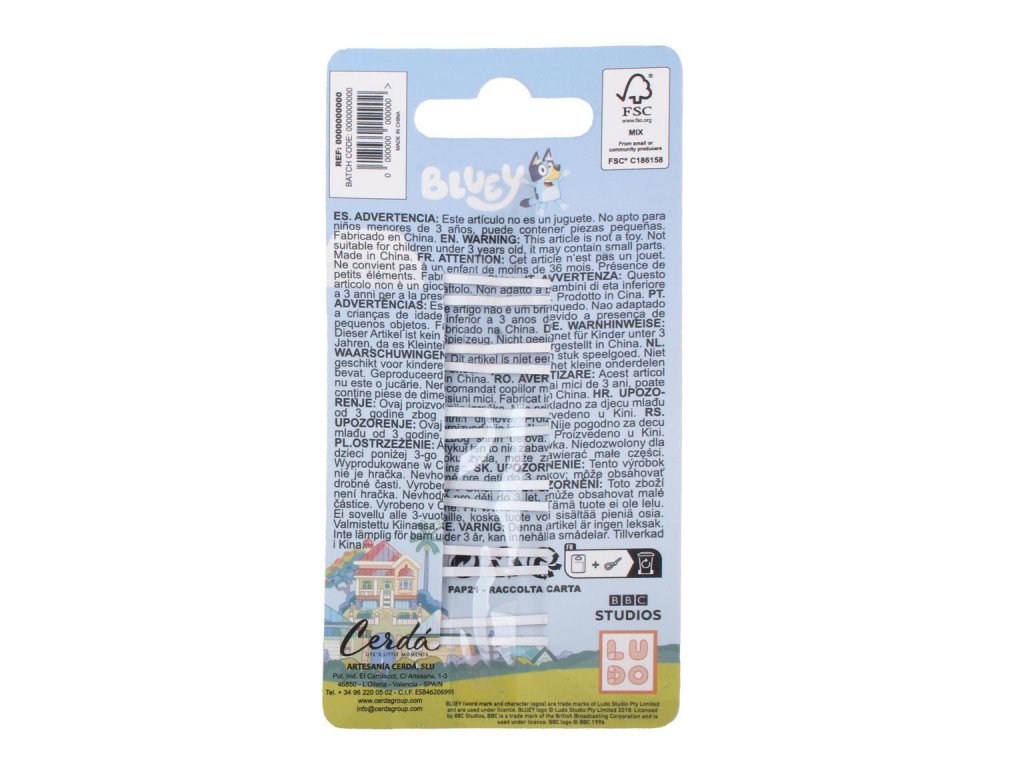 Sada 6 ks sponek s motivem Bluye. Rozměry balení: 12,5 x 6 cm. Pro děti od tří let. Výrobce: Cerda. ARTESANÍA CERDÁ, S.L. E-46850 LOleria, Valencia, Spain info@cerdagroup.comDoplňkové parametry
