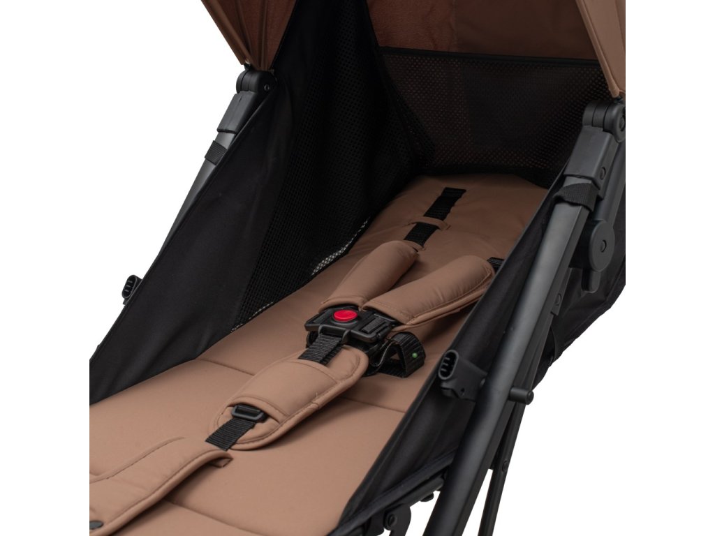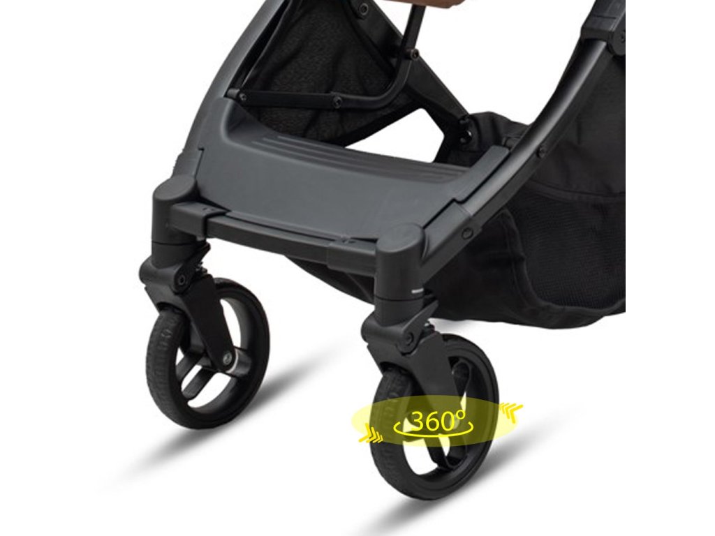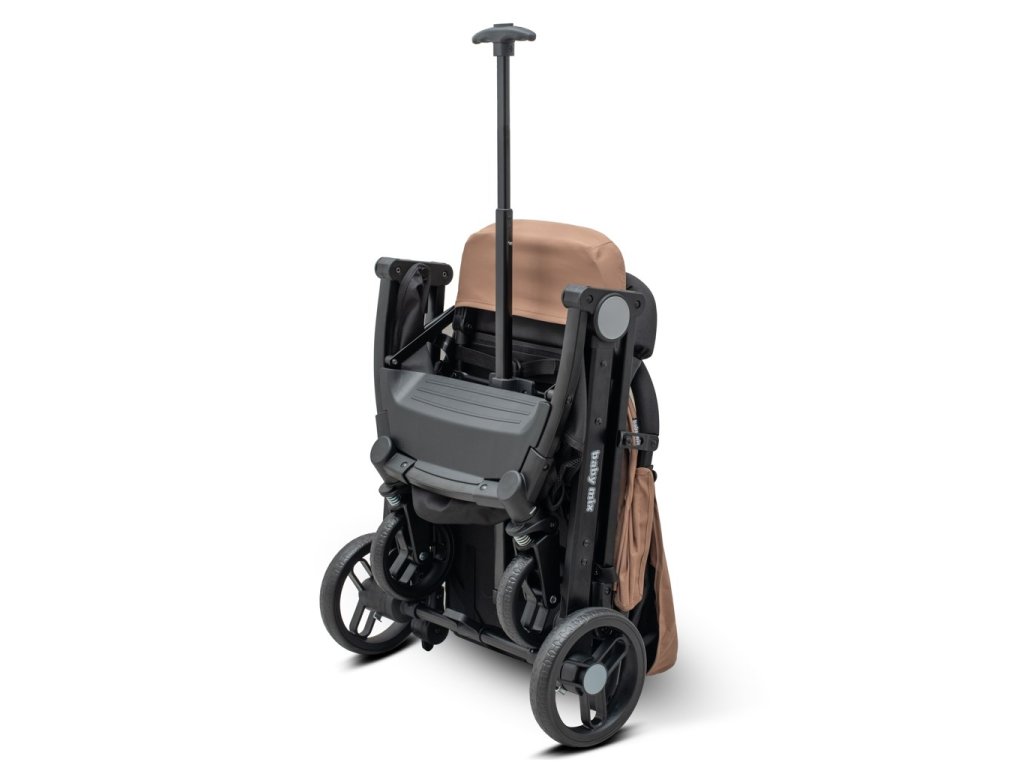 Po složení je kočárek mimořádně kompaktní, praktický a velmi lehký – váží jen 7,4 kg – ideální pro skladování a přepravu, ať už v kufru auta nebo při cestování letadlem. Díky integrované rukojeti jej lze pohodlně táhnout jako kufr.