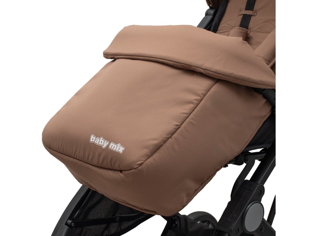 Součástí kočárku je praktický nánožník, který chrání před větrem, chladem a lehkým deštěm. Je vyroben z odolného, snadno omyvatelného materiálu a perfektně padne ke konstrukci kočárku, čímž dítěti zajišťuje teplo a pohodlí i v chladnějších dnech. Nánožník se snadno připevňuje díky pohodlnému zapínání a esteticky ladí s designem kočárku.
