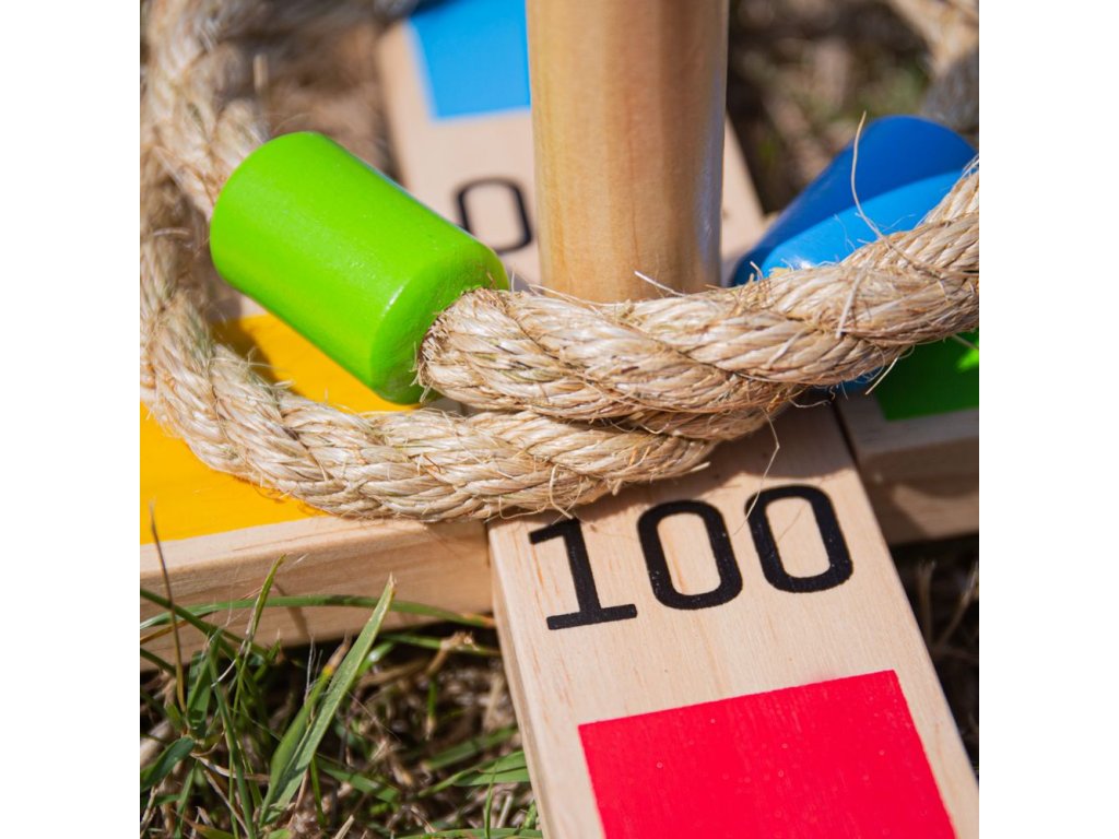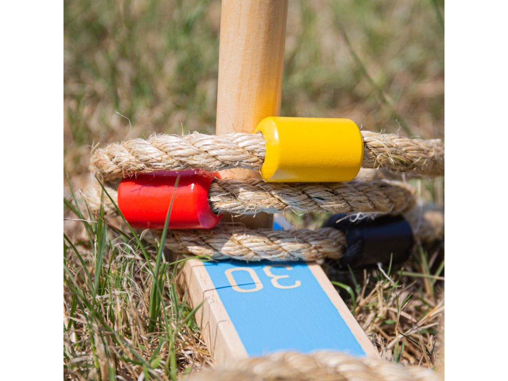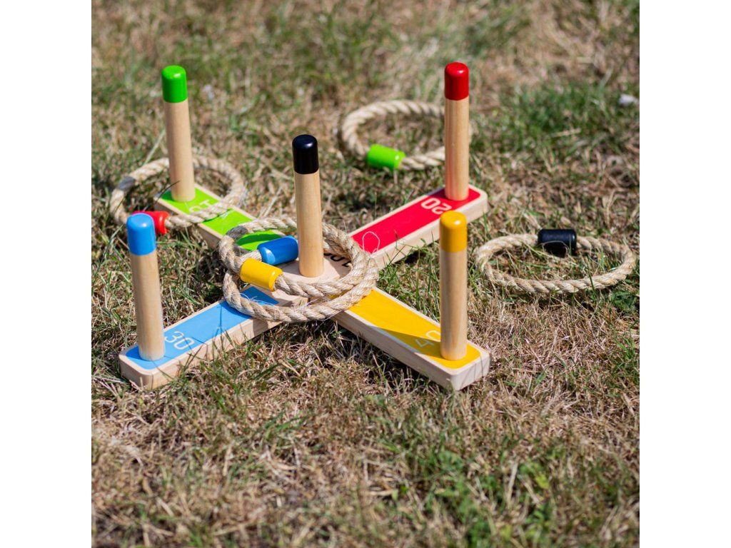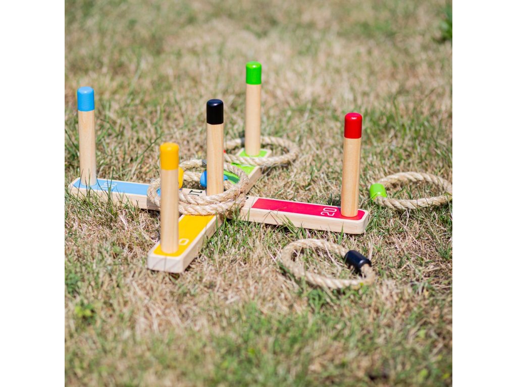 Tato klasická hra dovedností a přesnosti podpoří soutěživost v těch nejmenších, když se pokoušejí přehodit lana přes barevné tyče a dosáhnout tak nejvyššího skóre. Každé lano je barevně sladěné s jednou tyčí. Hrajte jednotlivě nebo s rodinou a přáteli, uvnitř i venku. Hlavní vlastnosti: pomáhá rozvíjet zručnost a koordinaci a zlepšuje matematické dovednostivyrobeno z vysoce kvalitních, zodpovědně dodávaných materiálůodpovídá současným evropským bezpečnostním normámDoplňkové parametry