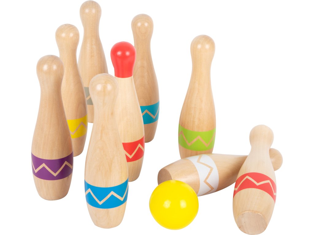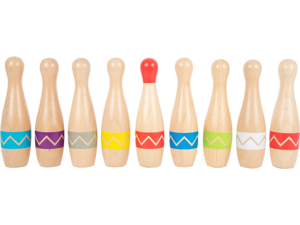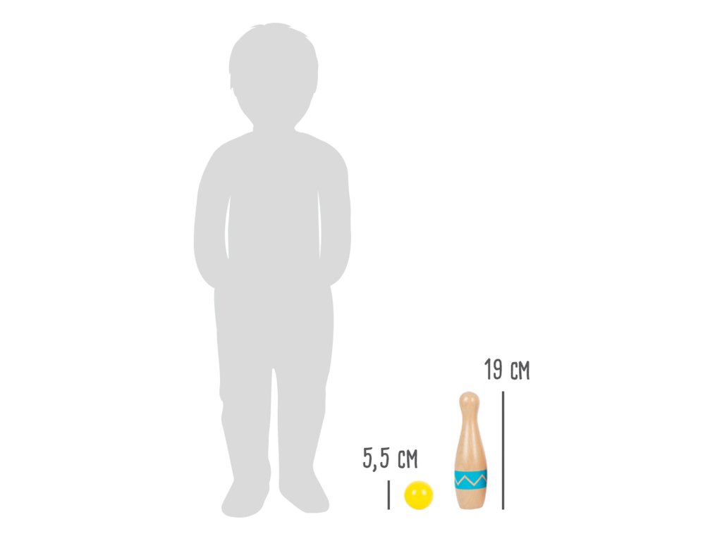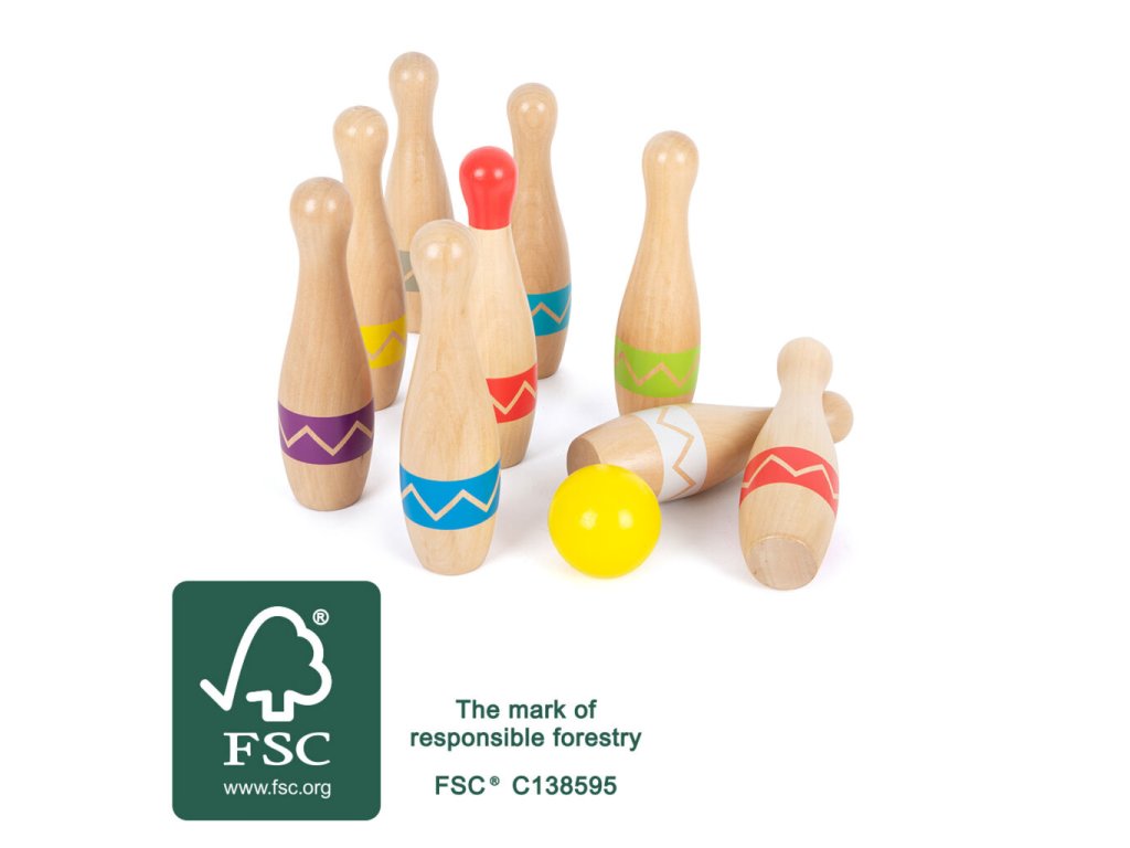 Kdo shodí všech devět kuželek? Tento set je vyroben ze 100% certifikovaného FSC® dřeva, zábavná hra pro všechny věkové kategorie! Devět kuželek je vyrobeno z pevného dřeva v moderním „Active“ designu, dvě dřevěné koule mají velikost tak akorát pro děti. Kuželky jsou vhodné do vnitřních i venkovních prostor. Kuželkový set je uložen v textilním pytlíku s poutky, můžete si jej tak vzít kamkoliv s sebou. Díky moderním barevným potiskům kuželky jednoduše uvidíte i v trávě a z větší dálky. Kdo má nejpřesnější mušku?