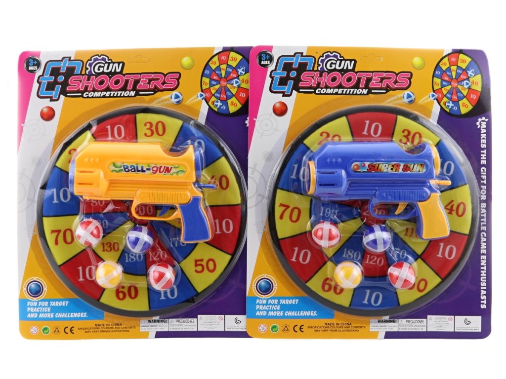Balení obsahuje terč, pistolku a 4 míčky. Baleno na kartě. Rozměry balení 32x39x4 cm. Průměr terče 28 cm. Věk 3+Doplňkové parametry