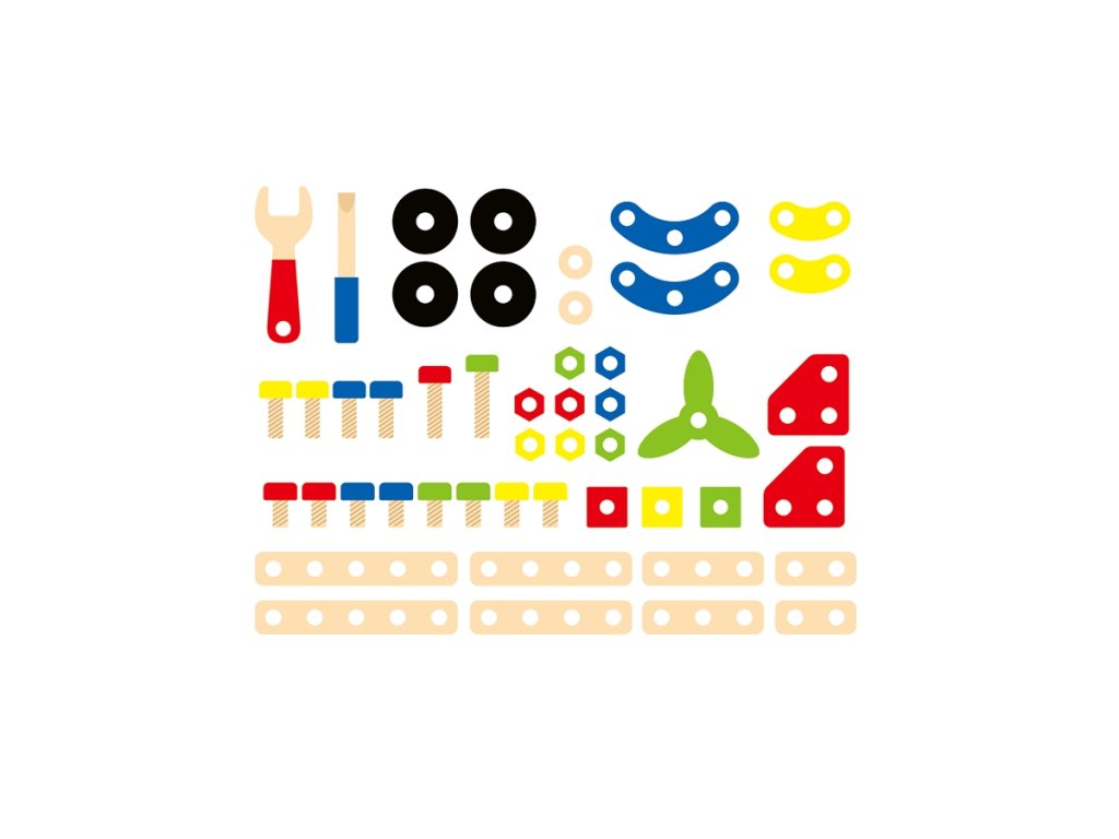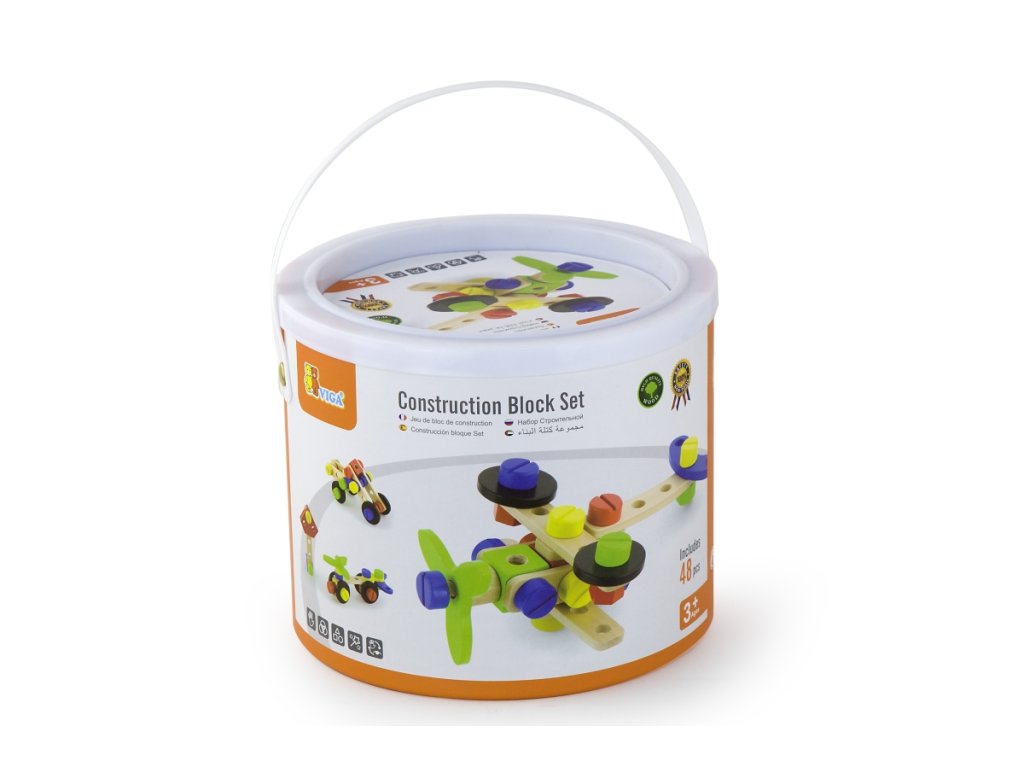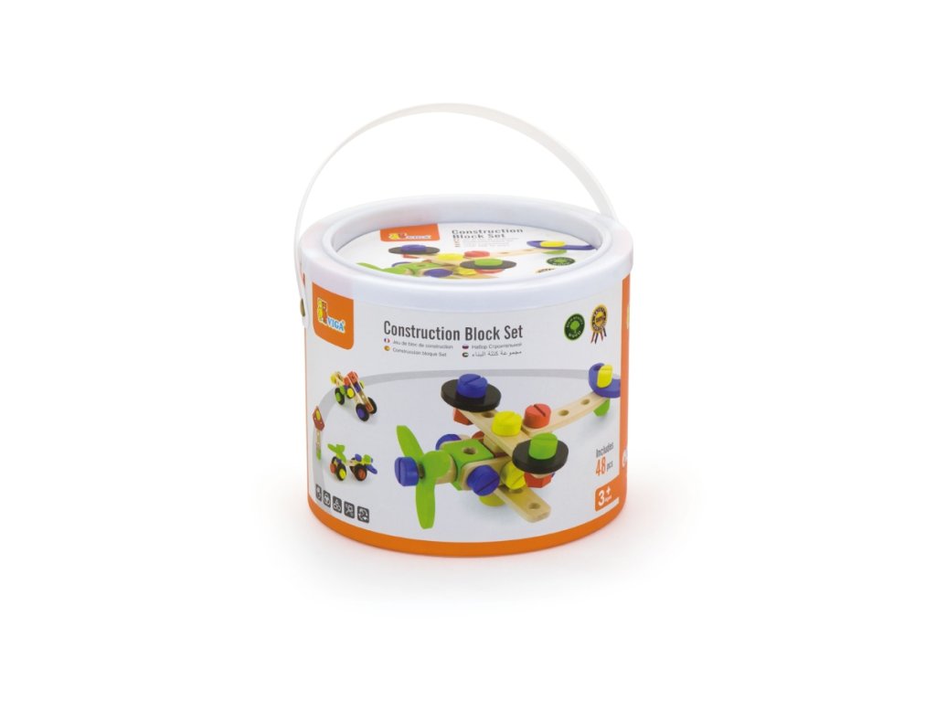 Dřevěná stavebnice konstruktér v kyblíku. Obsahuje 48 dílků a obrázkovou brožuru s návody na stavění. Rozměry balení cca 18 x 15 cm. Věk 3+Doplňkové parametry