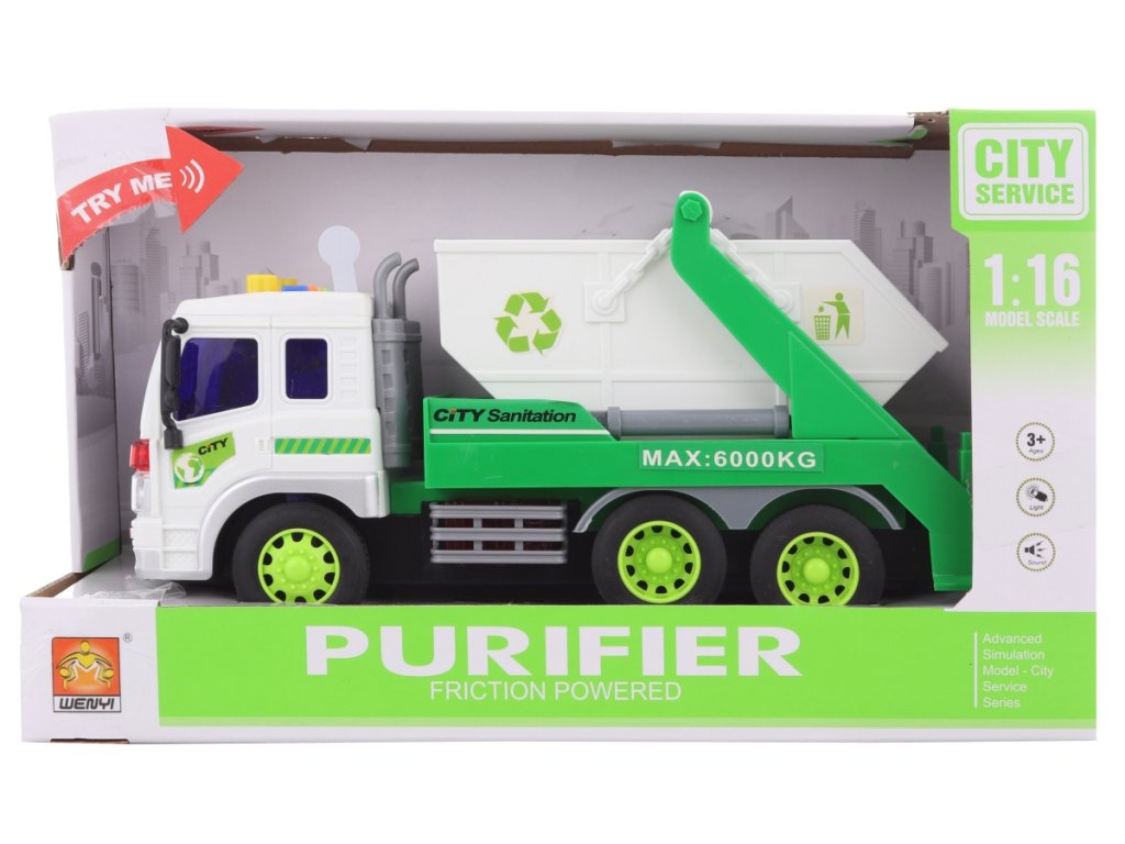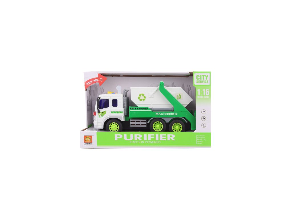 Auto s kontejnerem na baterie. Po stisknutí tlačítek na kapotě vydává zvuky a svítí. Rozměry auta cca 26 x 13 cm. Rozměry balení cca 32 x 18,5 x 12 cm. Napájení 3x AG13 (je součástí balení). Věk 3+Doplňkové parametry