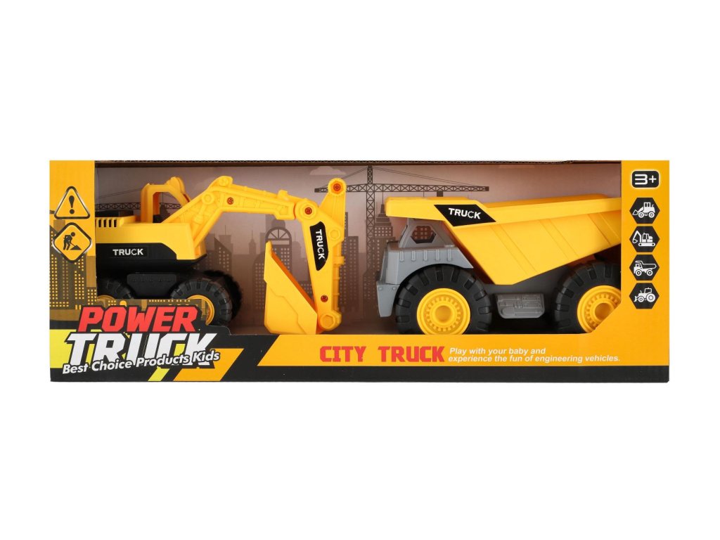 Tato sada dvou stavebních vozidel je skvělým doplňkem do každé dětské sbírky pracovních strojů. Autíčka jsou vyrobena z odolného plastu a mají volný chod, takže se snadno pohybují po jakémkoli povrchu – stačí je postrčit a jedou.Rozměry balení 39 x 14 x 12 cm