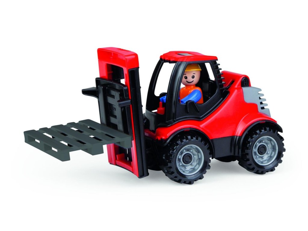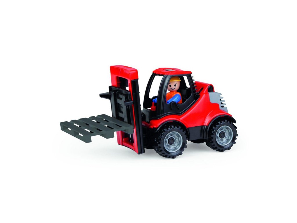 Truckies vysokozdvižný vozík s paletou z kvalitního plastu a velmi pevnou stavbou. Plně mechanicky funkční. Obsahuje odklopitelnou kabinu s aktivním panáčkem.Velikost auta: 22 cm