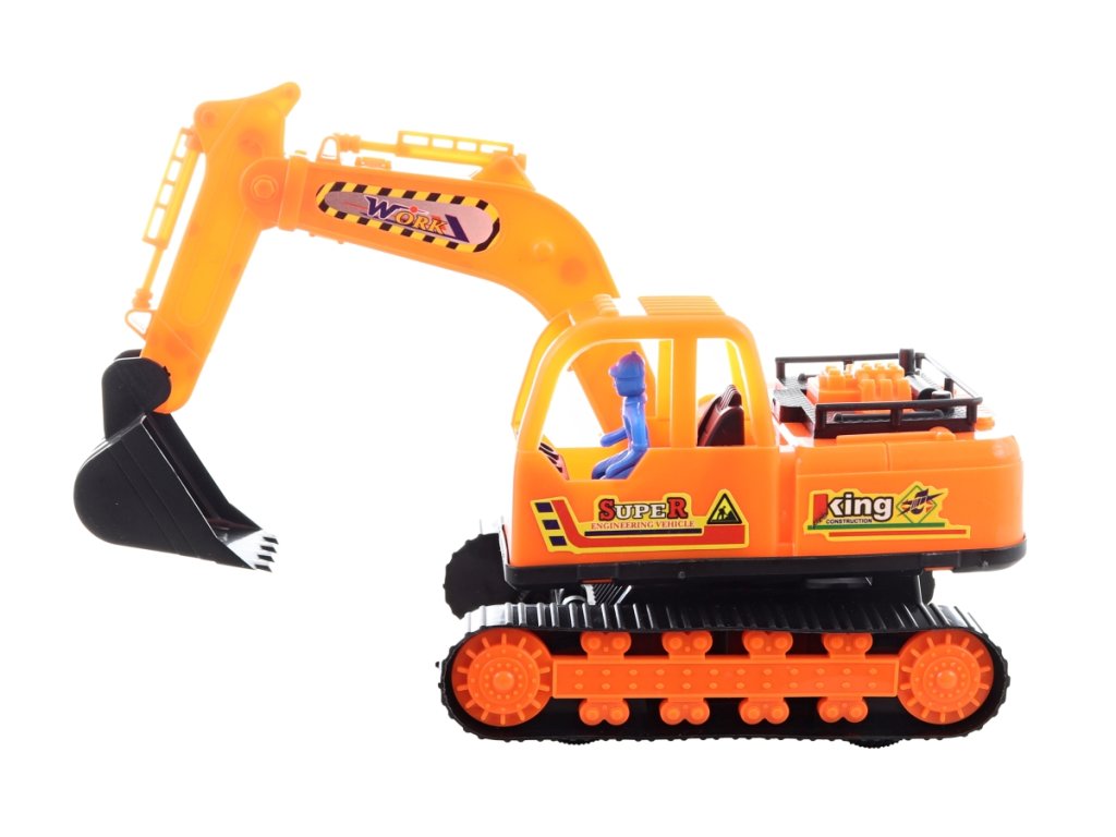 Pásový bagr z plastu. Pásy nejsou funkční, auto se pohybuje pomocí koleček na volný chod. Baleno v sáčku. Rozměry balení cca 28x22x11 cm. Rozměry bagru 24x13x10 cm. Věk 3+Doplňkové parametry