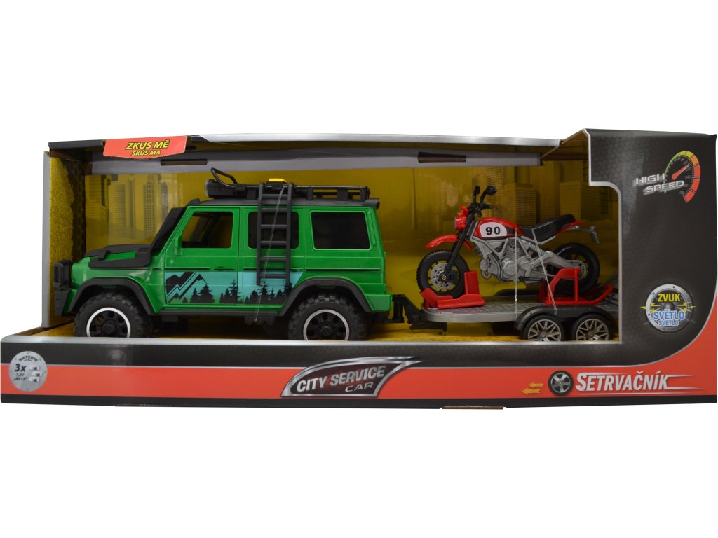 CITY SERVICE CAR - 1:14 - Vozidlo lesní stráže s přívěsem a motorkou (se zvukem a světly)