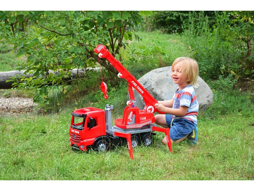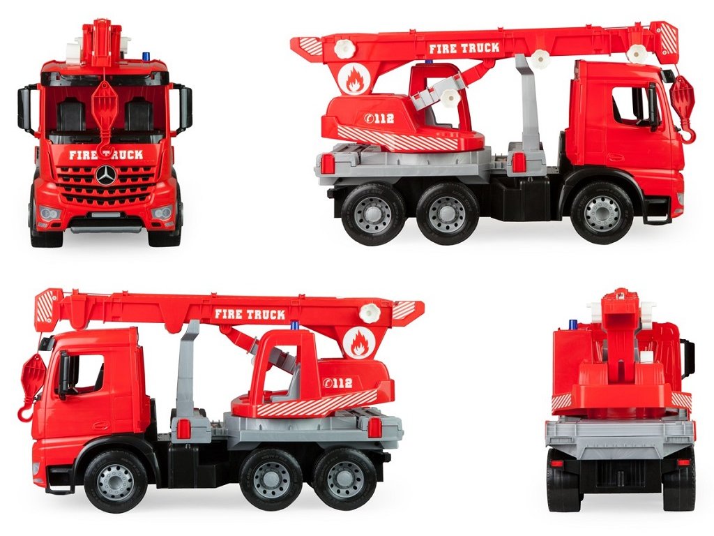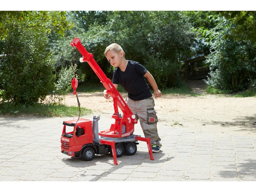 Plně mechanicky funkční Autojeřáb Mercedes Actros se 6 koly o velikosti 70 cm. S plně roztaženým ramenem dosahuje jeřáb velikosti až 115 cm. Součásti jsou 4 boční výsuvné stabilizační nohy, které zabraňují aby se jeřáb nepřevážil na strany, rovněž jsou součásti klíny, pomocí kterých lze zajistit kola proti pohybu dopředu nebo dozadu. Samotné rameno jeřábu lze otáčet o 270°. Vysouvání ramene a jeho zvedání je ovládáno pomocí obslužných koleček. Samotný jeřábový hák je obsluhován pomocí navijáku a lanka.