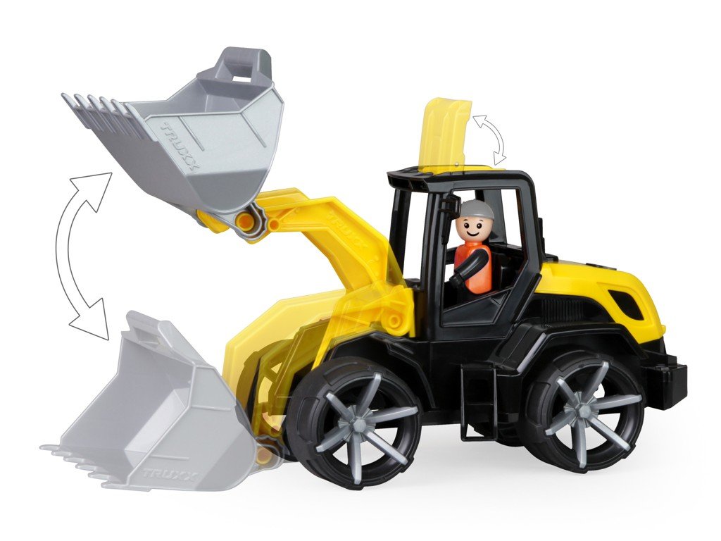 Truxx 2 nakladač z kvalitního plastu a velmi pevnou stavbou. Plně mechanicky funkční. Obsahuje odklopitelnou kabinu s aktivním panáčkem. Pogumovaná kola s tichým chodem. Hlavní vlastnosti: plně mechanicky funkčnívyroben z kvalitního plastupogumovaná kolas aktivním panáčkemDoplňkové parametry
