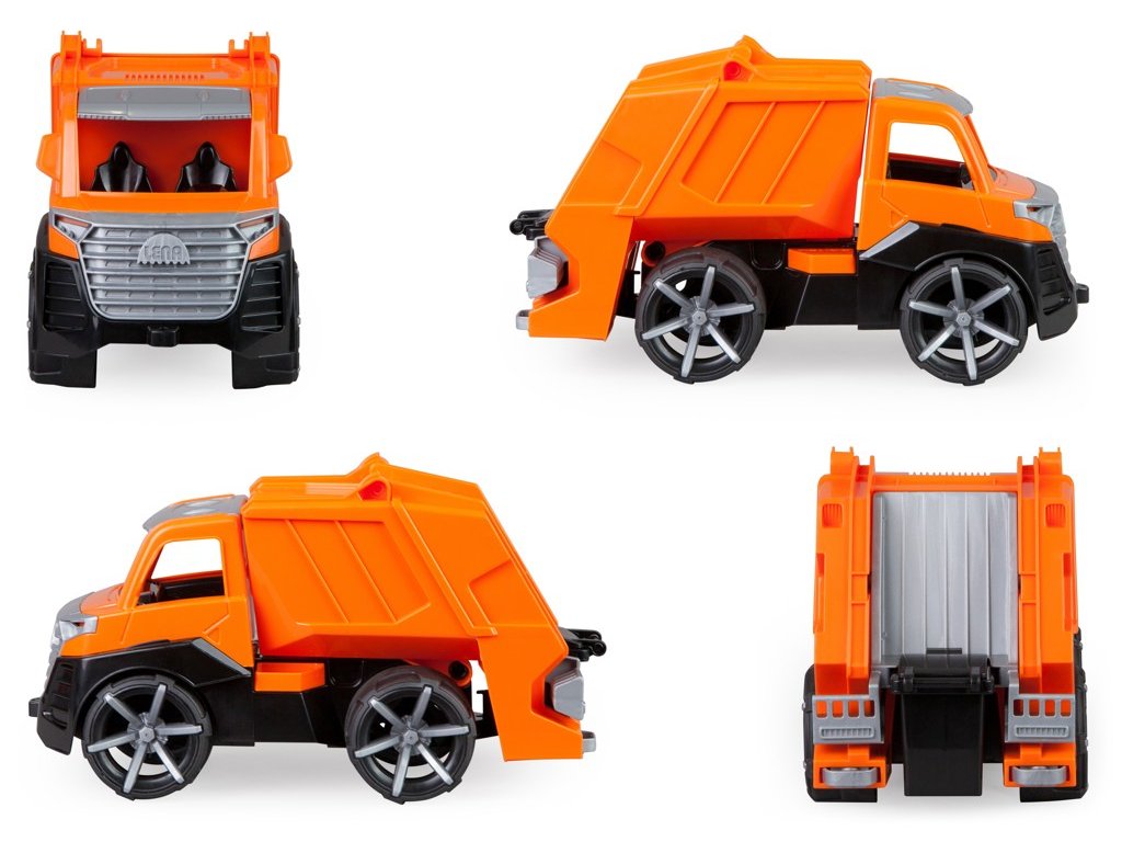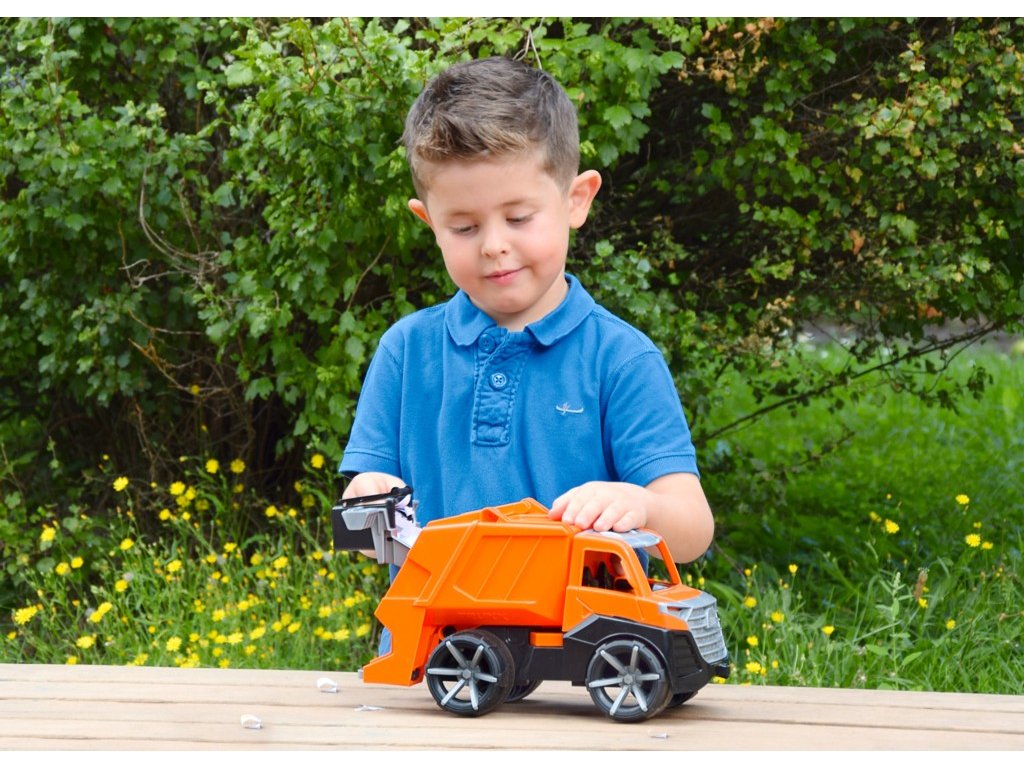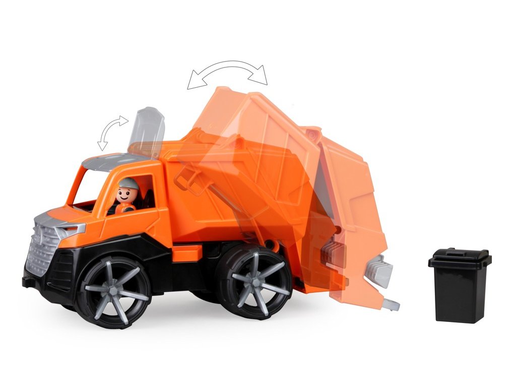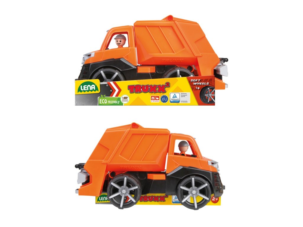 Moderní autíčko ze série TRUXX 2 je velmi pevné a odolné, vhodné i ke hraní venku, na pískovišti. Je vybaveno figurkou řidiče a díky odklopné střeše je prostor kabiny snadno přístupný. Funkční, výklopná korba je opatřena pojistkou zamezující nechtěnému vysypání nákladu. Součástí autíčka je také volně uložená popelnice, kterou lze pomocí jednoduchého mechanismu realisticky vysypat do nákladového prostoru. Hračka je vyrobena z nezávadného plastu, dodávána v běžné kartonové krabici.