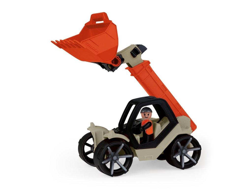 Kvalitně zpracovaný teleskopický nakladač byl navržen a vyroben z kvalitního materiálu s důrazem na moderní vzhled, vysokou funkčnost, odolnost a precizní zpracování. Díky těmto vlastnostem nabízí maximální hrací hodnotu. Má velmi pevnou stavbu a obsahuje odklopitelnou kabinu s aktivním panáčkem a pogumovaná kola pro tichý chod.