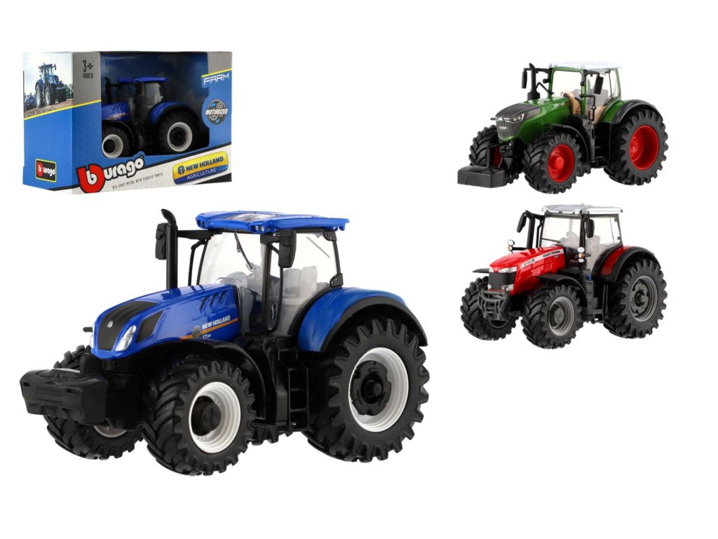 Traktor Bburago Fendt 1050 Vario/New Holland kov/Massey F.plast 13cm 2 druhy v krabičce 15x11x8cm