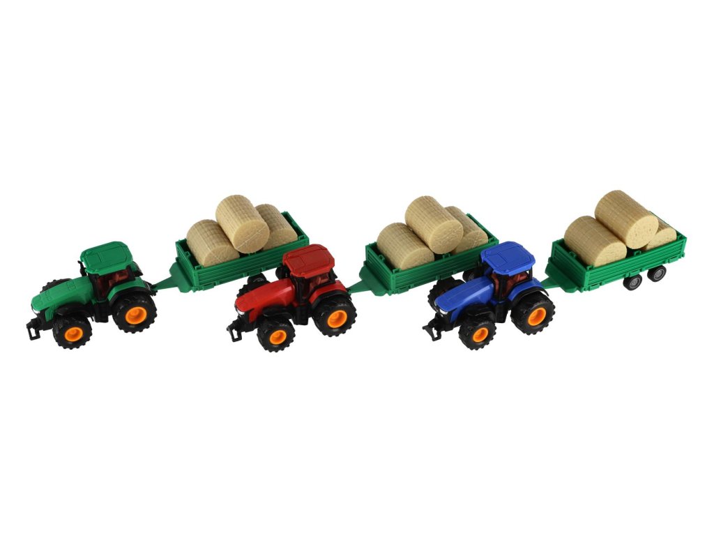 Traktor s vlekem s balíkama plast 30cm na setrvačník 3 barvy v krabici 33x12x9cm