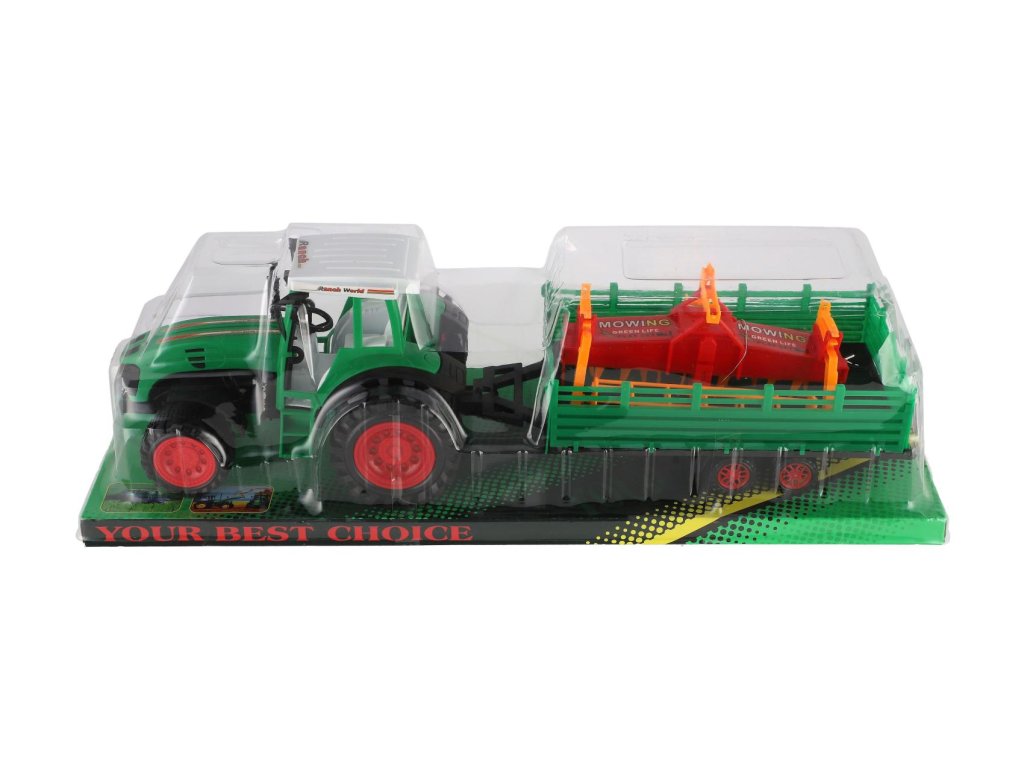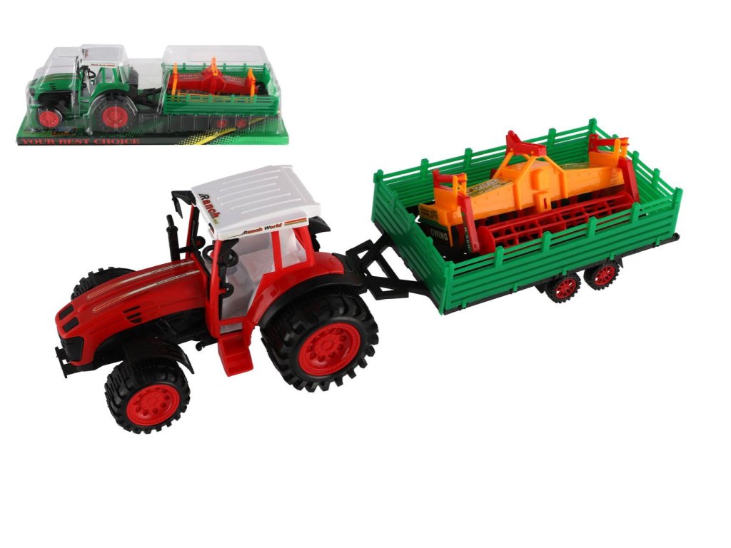 Traktor s vlekem s kombajnovým válcem plast 46cm na setrvačník 2 barvy v blistru