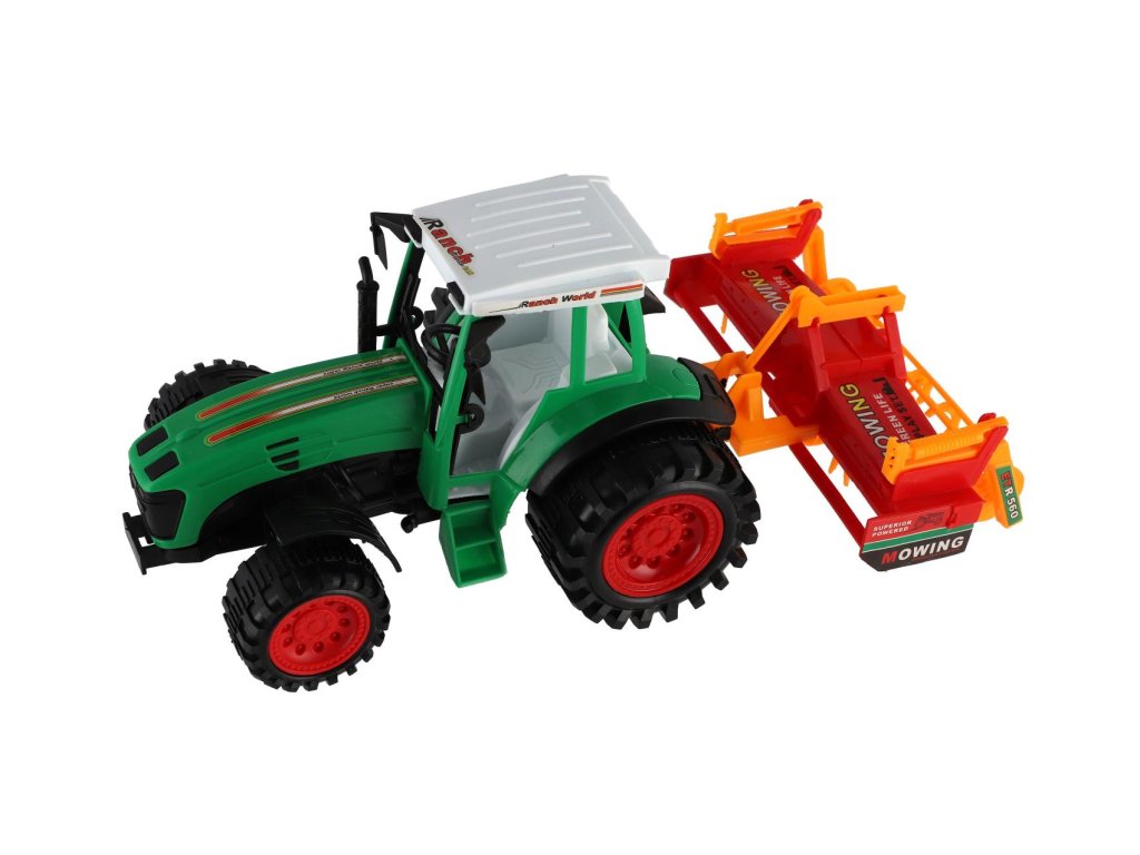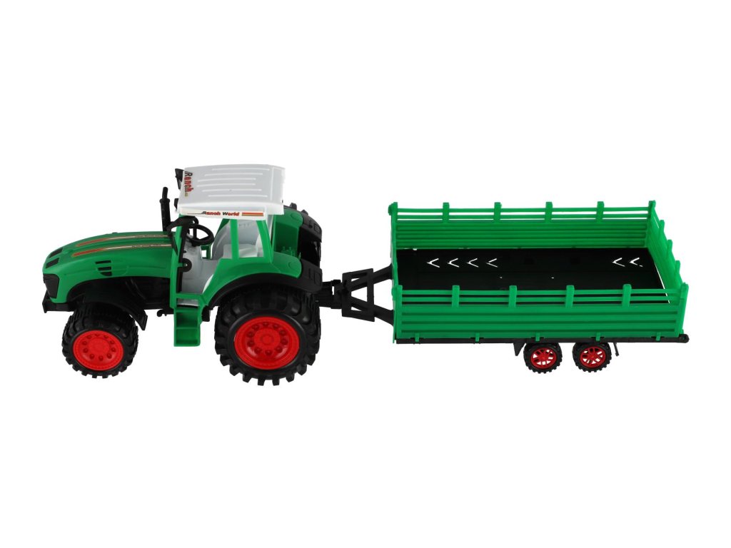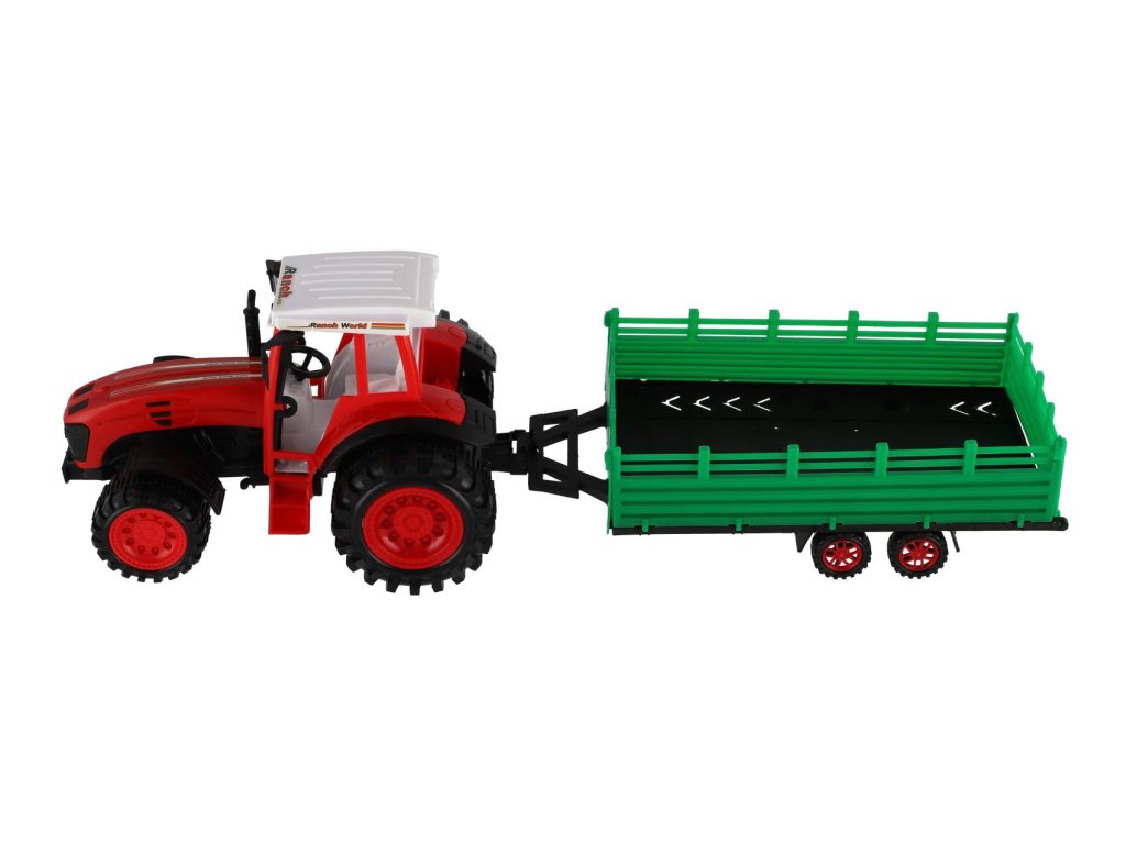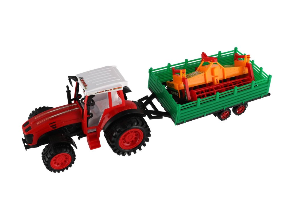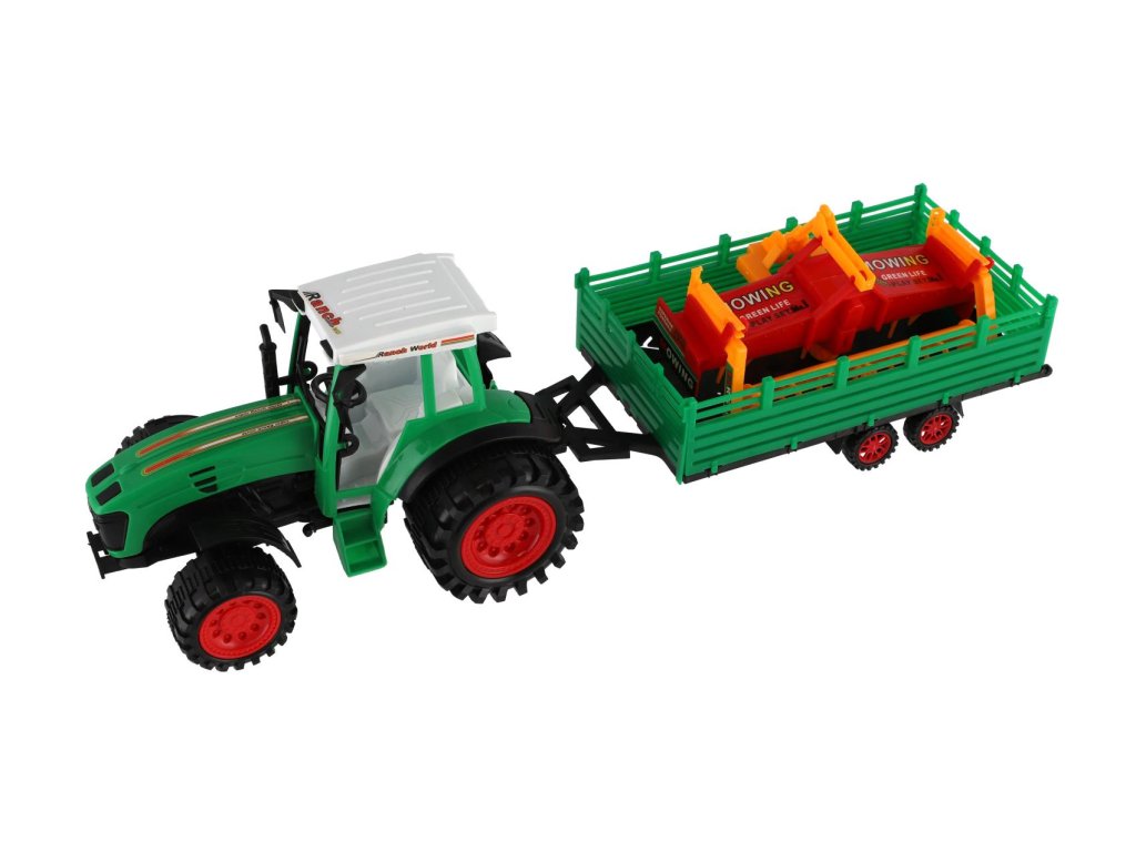Pro každého malého zemědělce je nepostradatelným, všestranným pomocníkem traktor s přívěsem. Traktor je na setrvačník a je velikosti 46 cm. Nekonečná práce na farmě může začít. Vlek s kombajnovým válcem je možné odpojit.