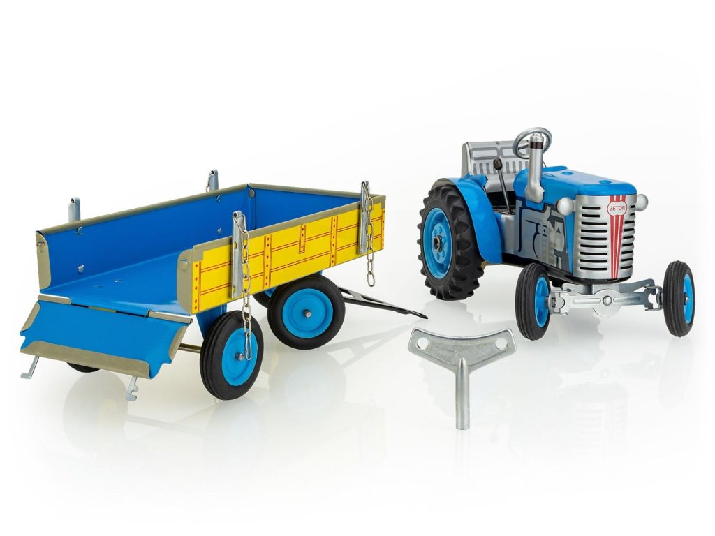 Traktor Zetor s valníkem modrý na klíček kov 28cm Kovap v krabičce