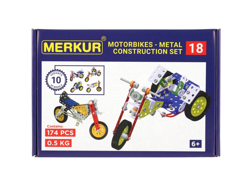 Stavebnice MERKUR 018 Motocykly 10 modelů 182ks v krabici 26x18x5cm