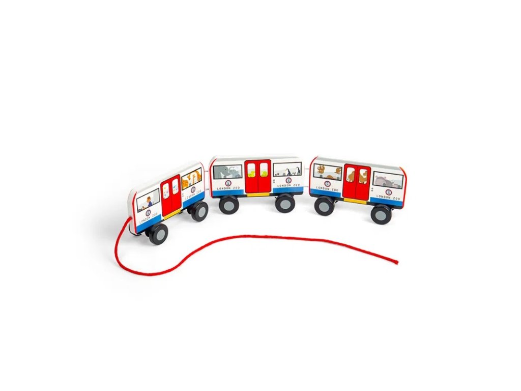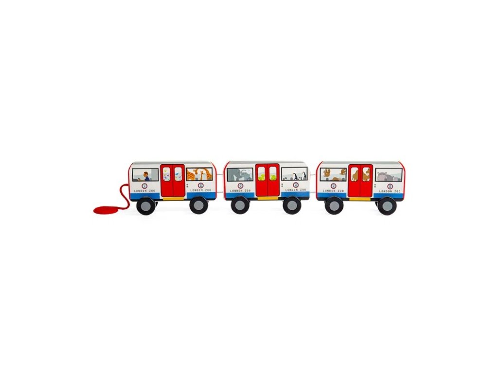 Podpořte Vaše dítě při jeho prvních krůčcích tahací hračkou na provázku! Jedná se o historické metro s třemi vagónky, které přepravuje cestující po Londýně, jen s tím rozdílem, že tento jede do londýnské zoo a jeho pasažéři jsou zvířátka! Hračka je ideální pro nejmenší děti, které se učí chodit, stane se jejich společníkem při jejich prvních krůčcích. Tato ekologická dřevěná tahací hračka pomáhá s koordinací a hrubou motorikou a je vyrobena z prvotřídního a udržitelného dřeva s certifikací FSC® a nabarvena netoxickými barvami a laky. Splňuje aktuální evropské bezpečnostní normy.