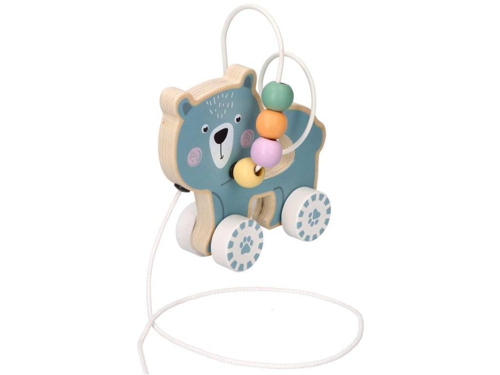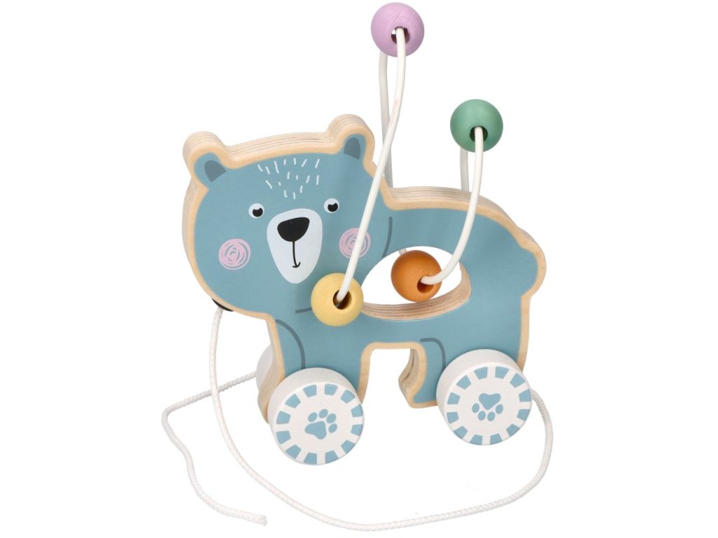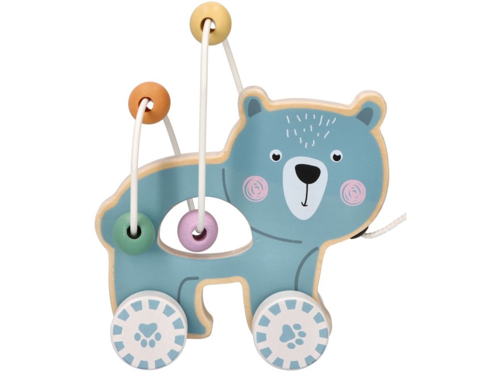 Medvídek je hračka 2 v 1: hračka do ručičky, na táhnutí a labyrint (provléací smyčka).Po drátech motorického labyrintu provléká dítě korálky a tím procvičuje jemnou motoriku.