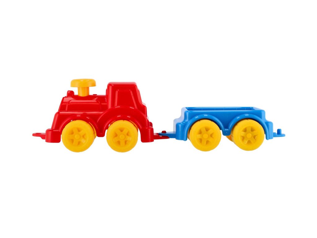 Krásný barevný plastový vláček pro milovníky mašinek. Vagónek lze za mašinku připojit a zase odpojit. Můžete tak převážet velký náklad. Vhodné také na písek. Délka složeného vláčku je 41 cm.Rozměry balení 21 x 13 x 22 cm.