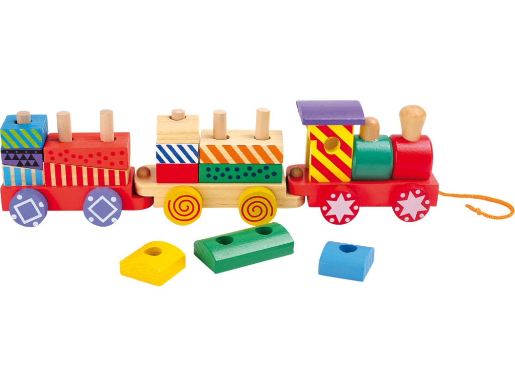 Vlak s mnoha skvělými barvami a vzory. Může změnit svůj vzhled pomocí barevných dřevěných bloků, které lze je jednoduše přemístit podle Vašich priorit Lokomotivu a dva vagóny lze vzájemně spojit a následně táhnout šňůrou.
