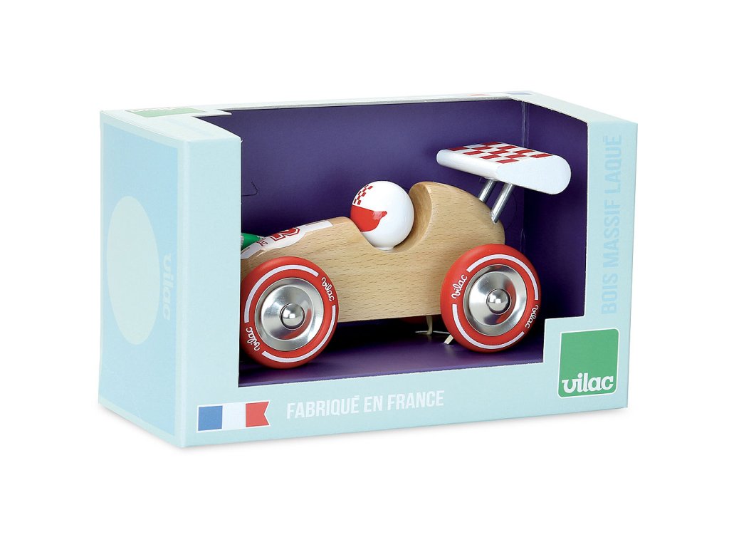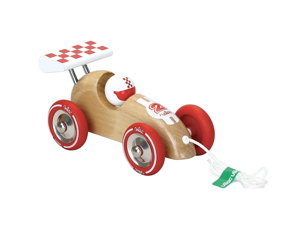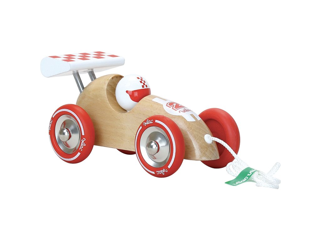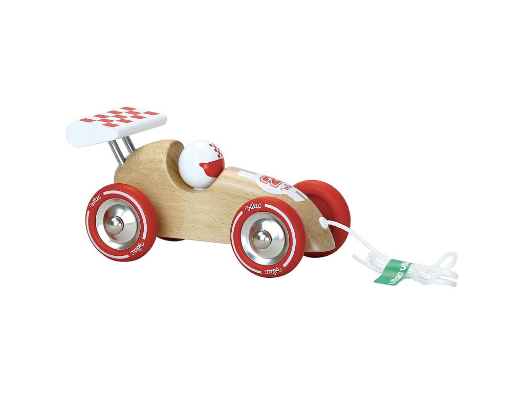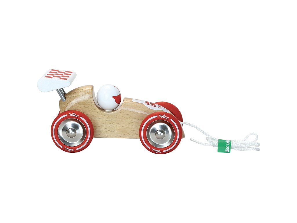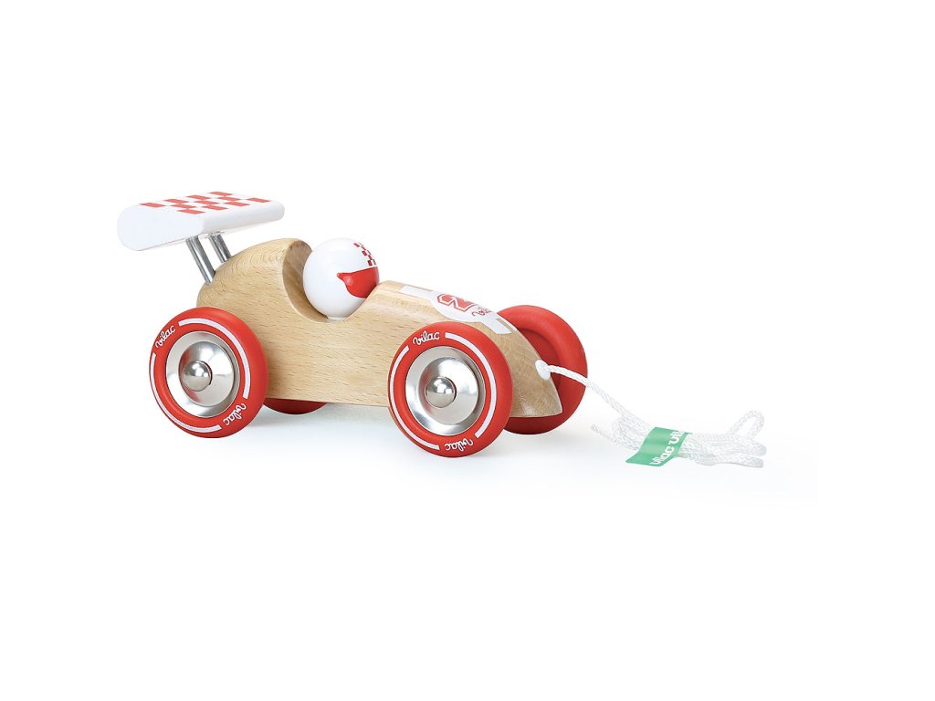 Vilac Tahací závodní auto přírodní s červeným křídlem
