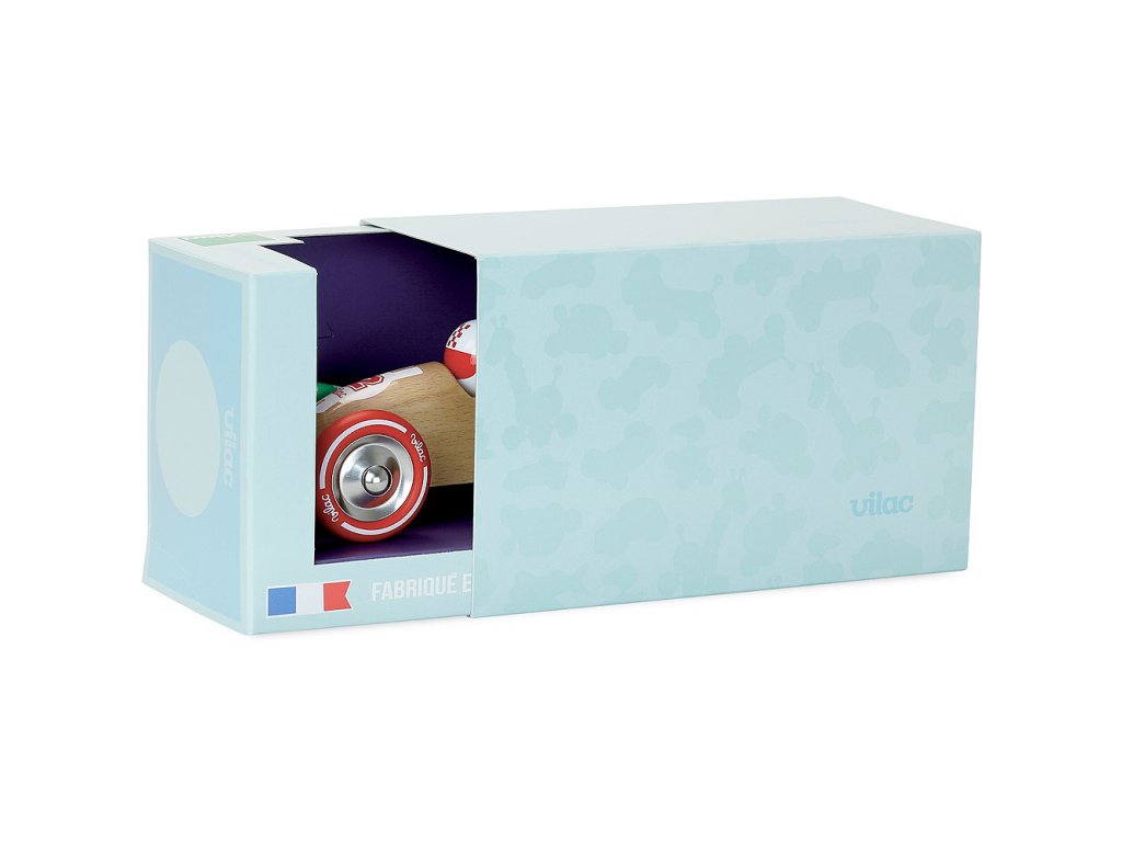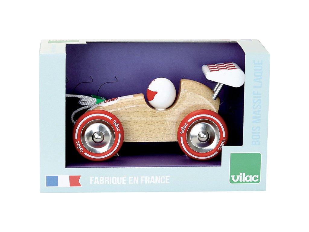 Krásný závoďák vyrobený z lakovaného dřeva s kovovými pogumovanými koly a šňůrkou k tahání. Dítka si jej mohou vzít kdekoliv s sebou. Vyrobeno ve Francii. Hlavní vlastnosti: podporuje rovnováhu a koordinaci pohybůvyrobeno ve FranciiDoplňkové parametry