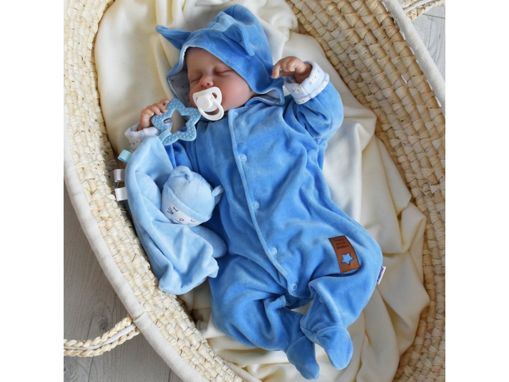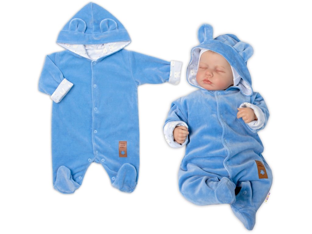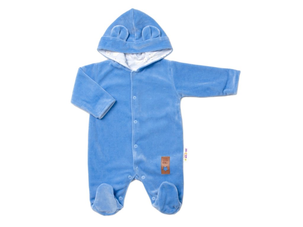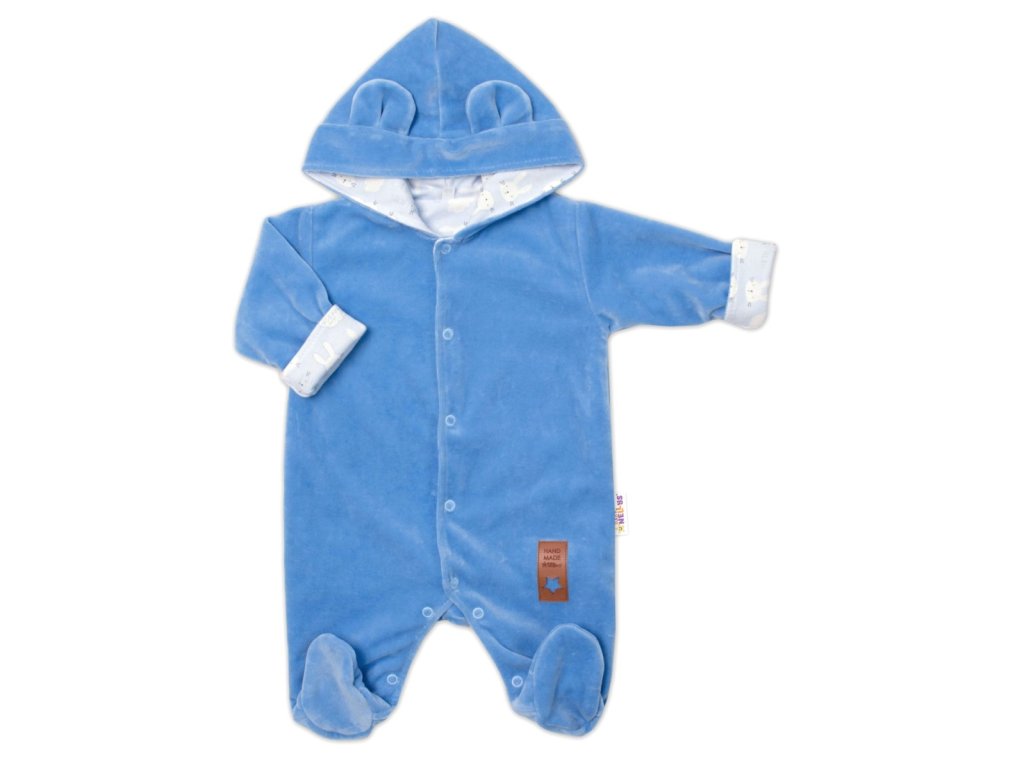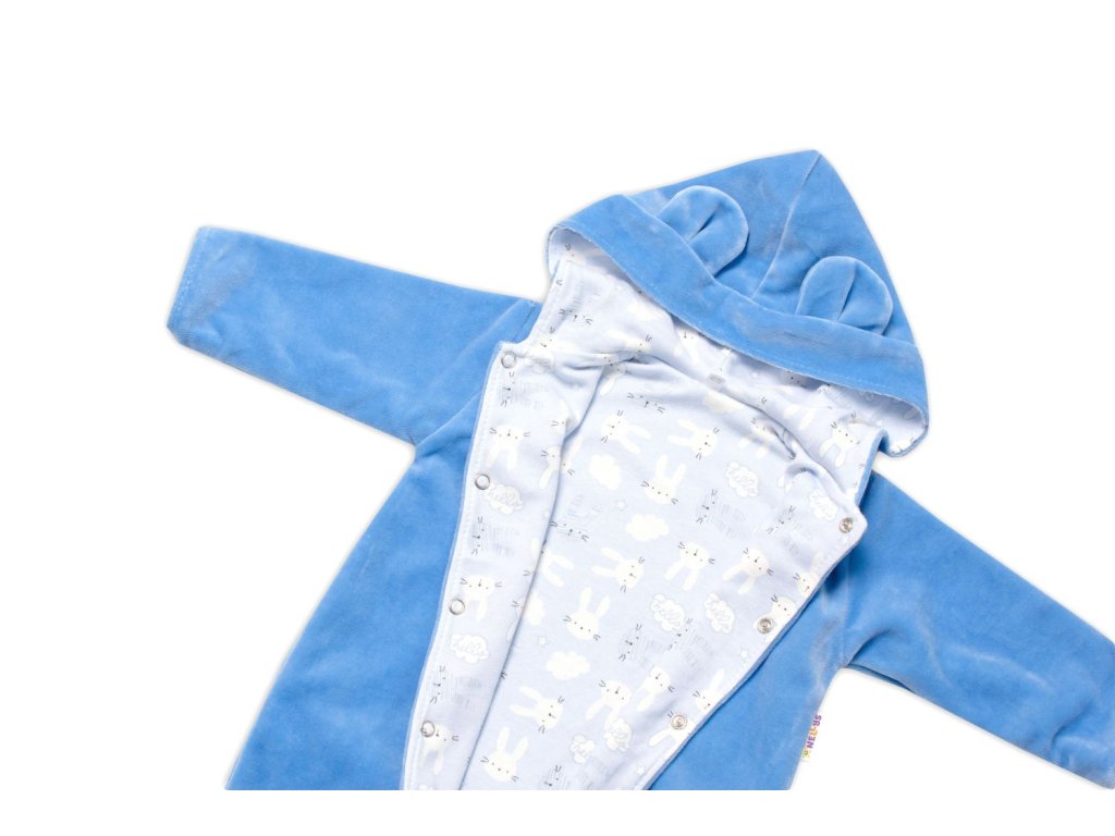 Baby Nellys Dvouvrstvý velurový overal s kapucí New Bunny, modrý