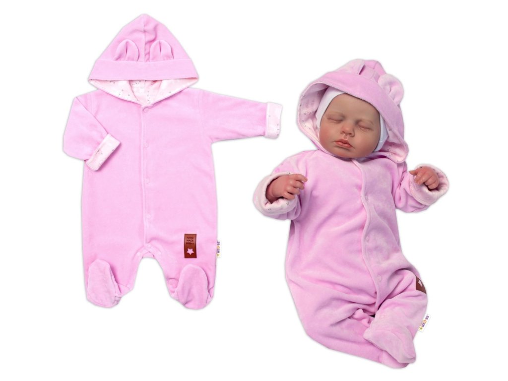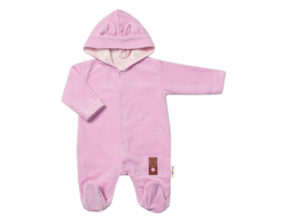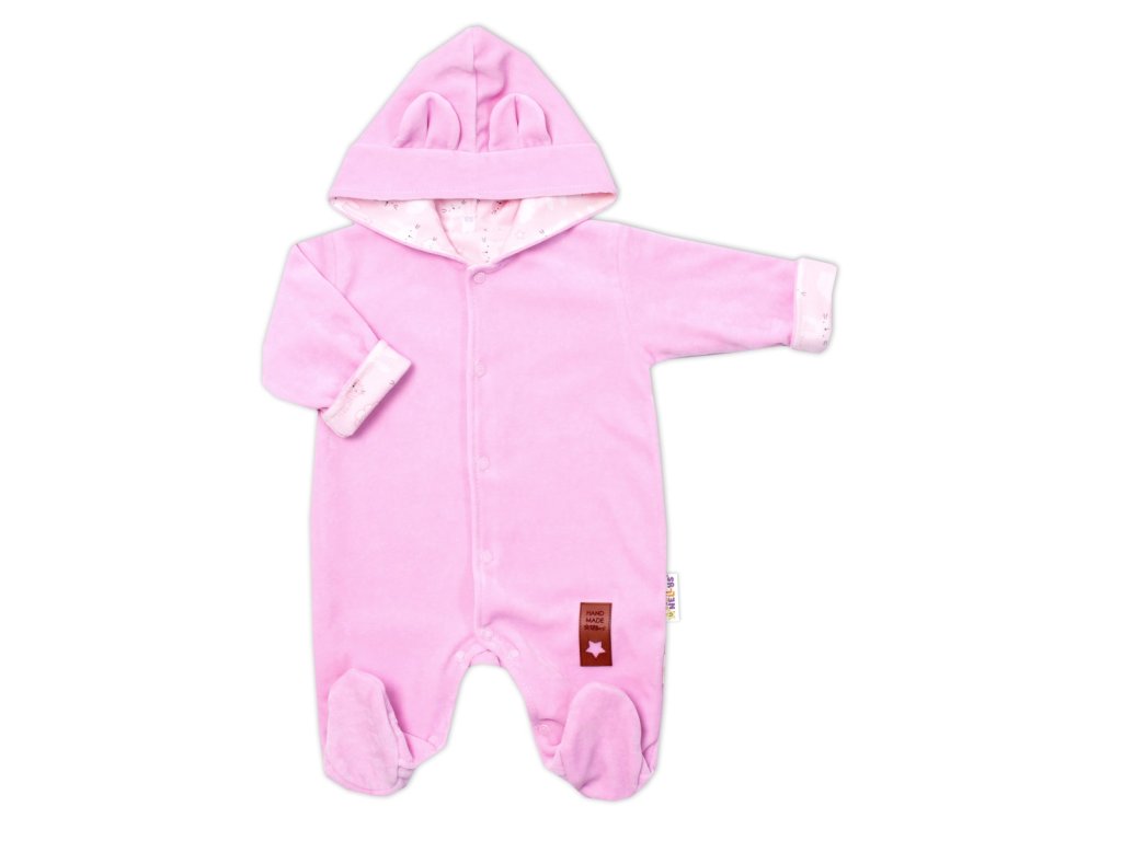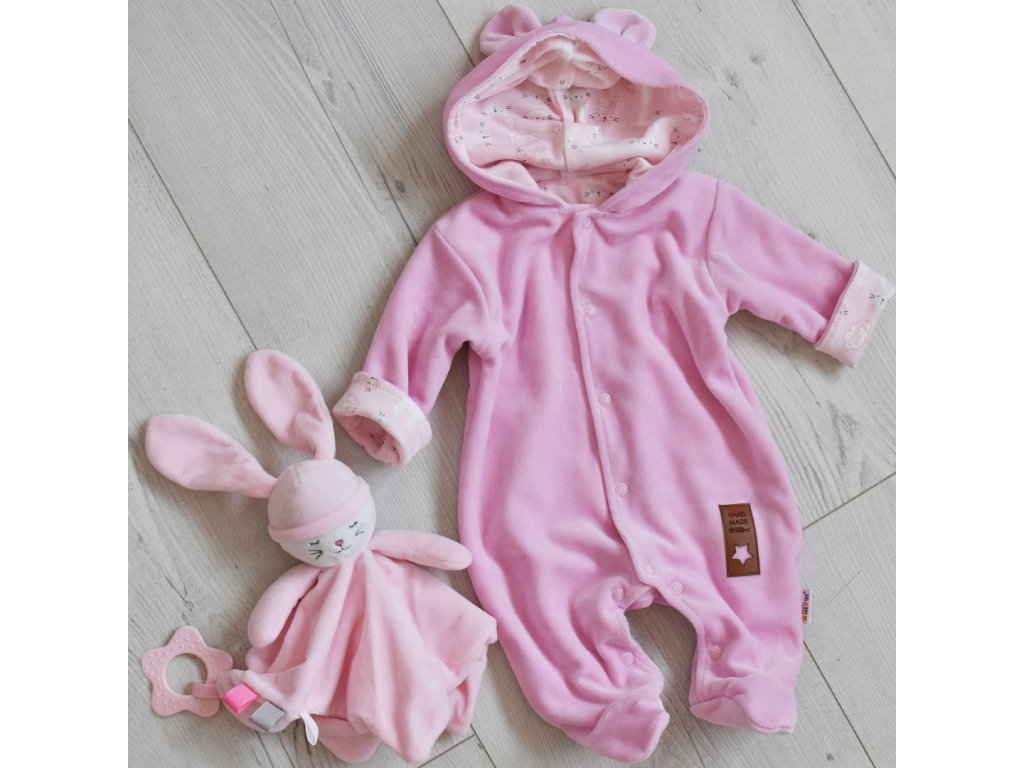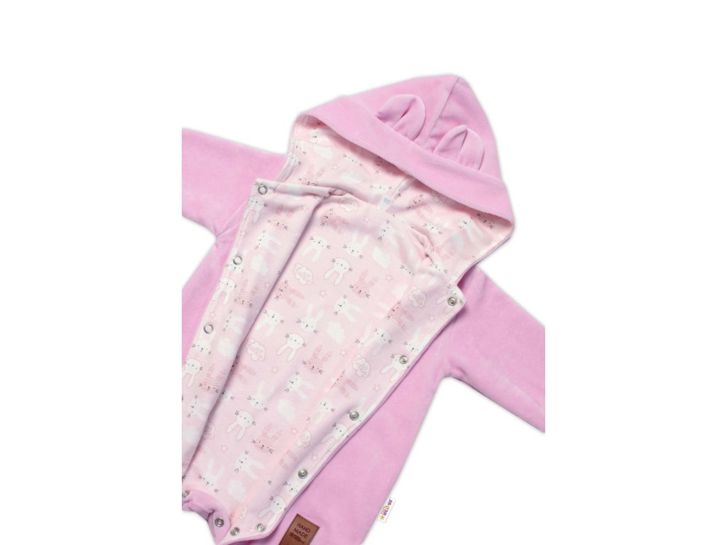 Baby Nellys Dvouvrstvý velurový overal s kapucí New Bunny, růžový