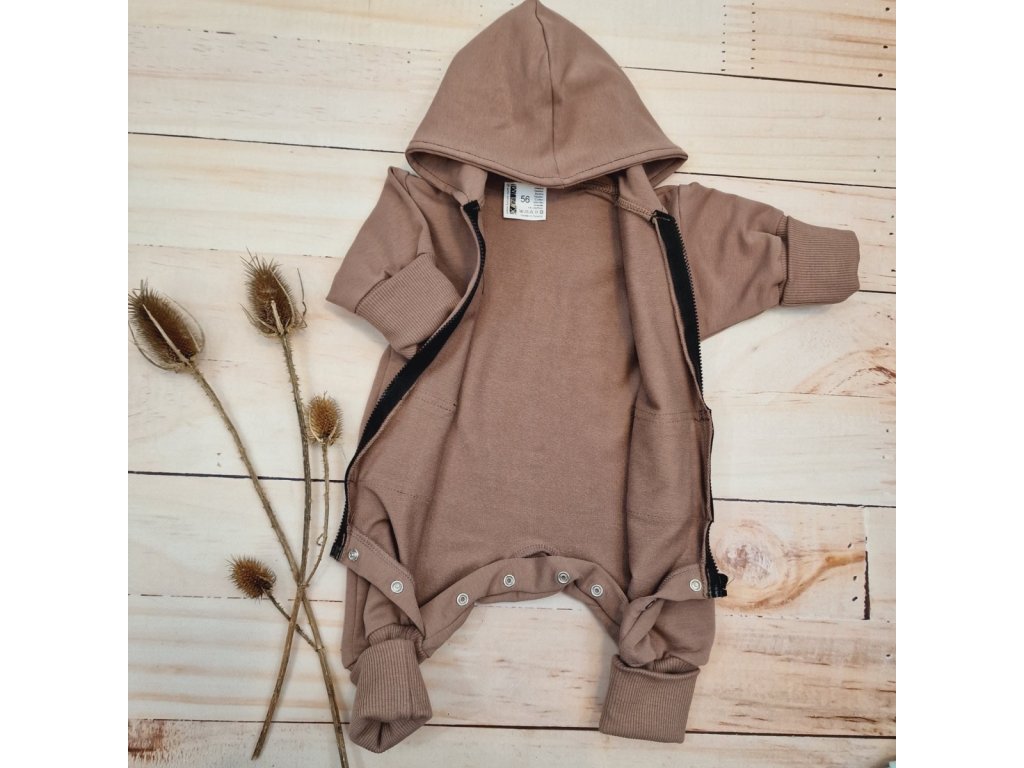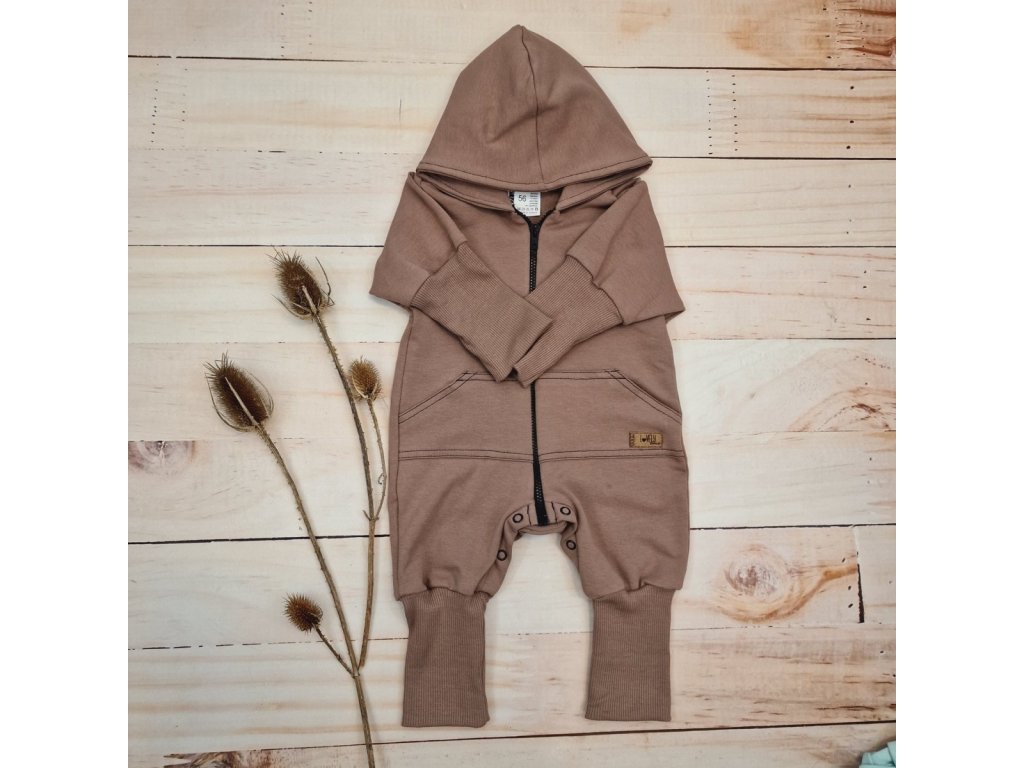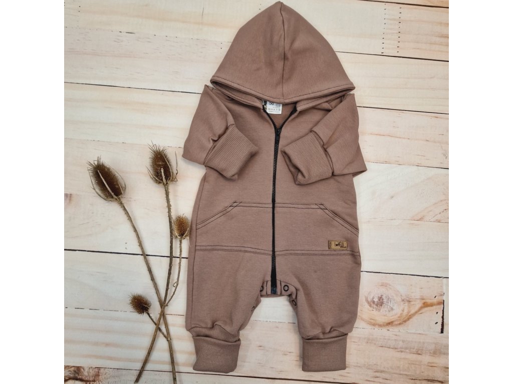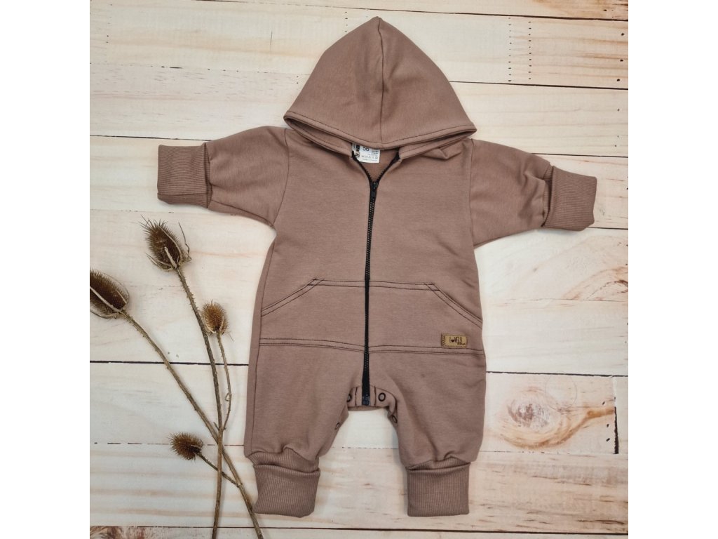Dětský teplákový overal s prodlouženými náplety, čokoláda