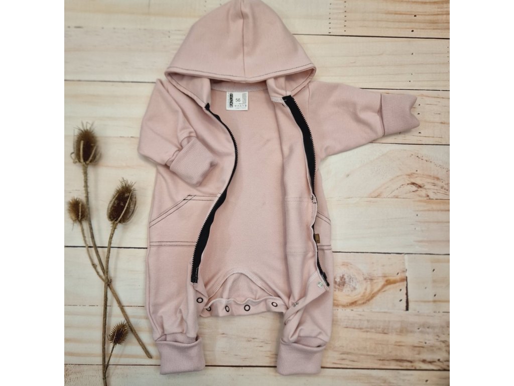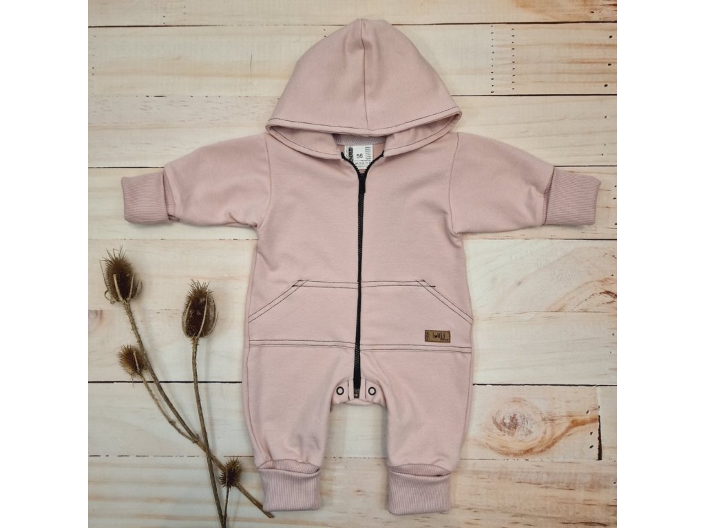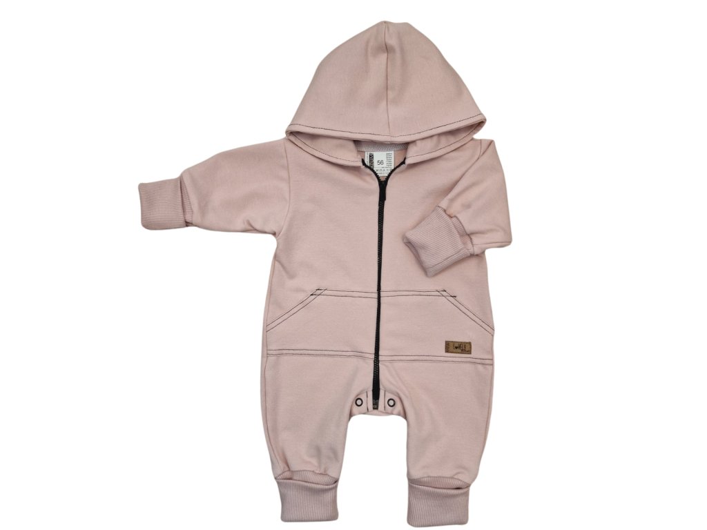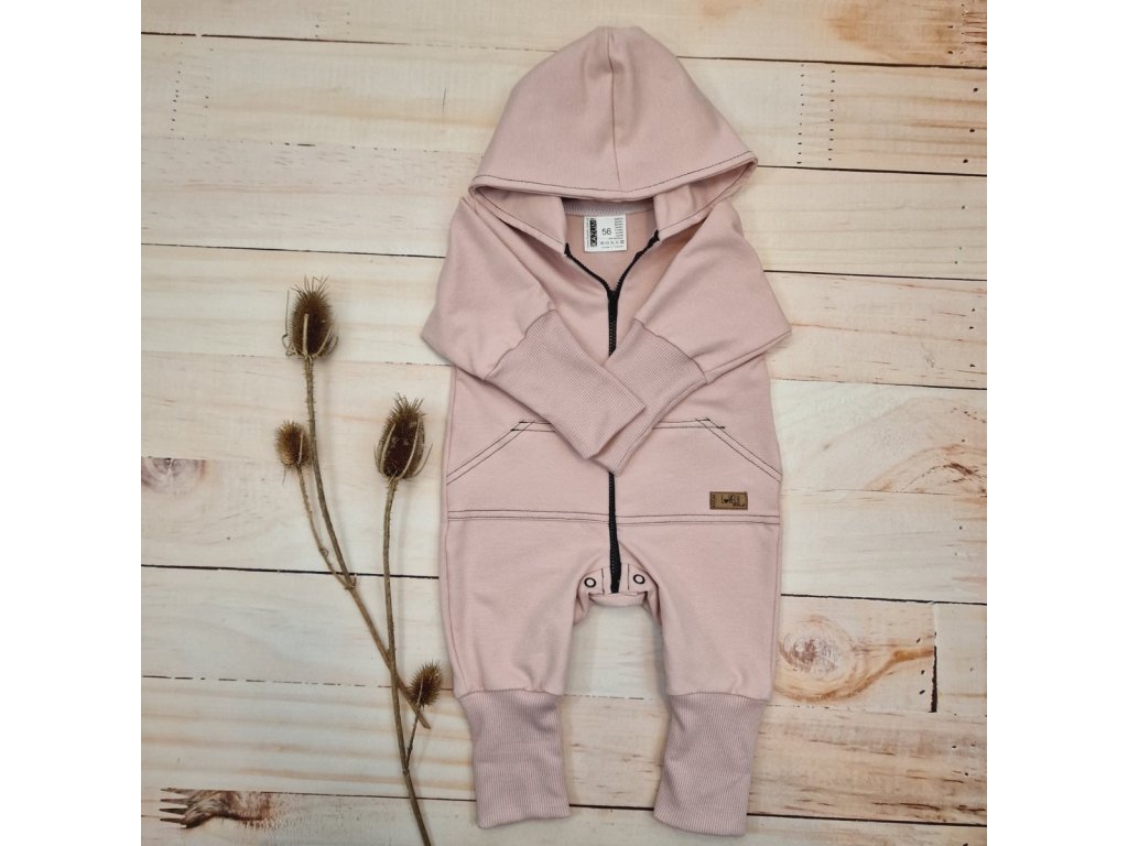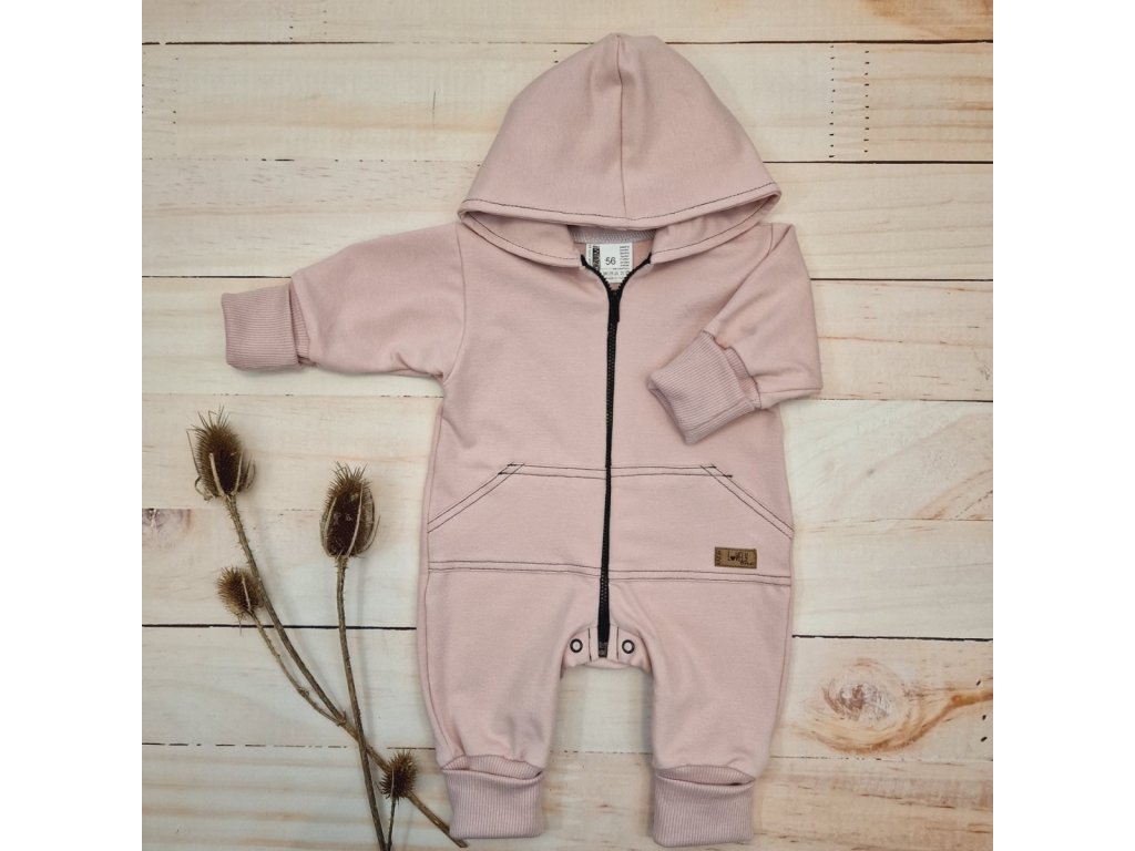 Dětský teplákový overal s prodlouženými náplety, pudrově růžový