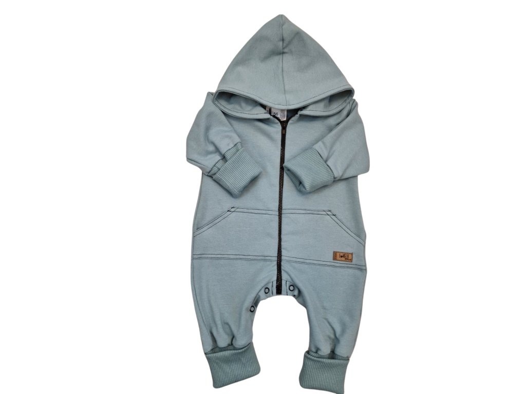 Dětský teplákový overal s prodlouženými náplety, tm. mátová