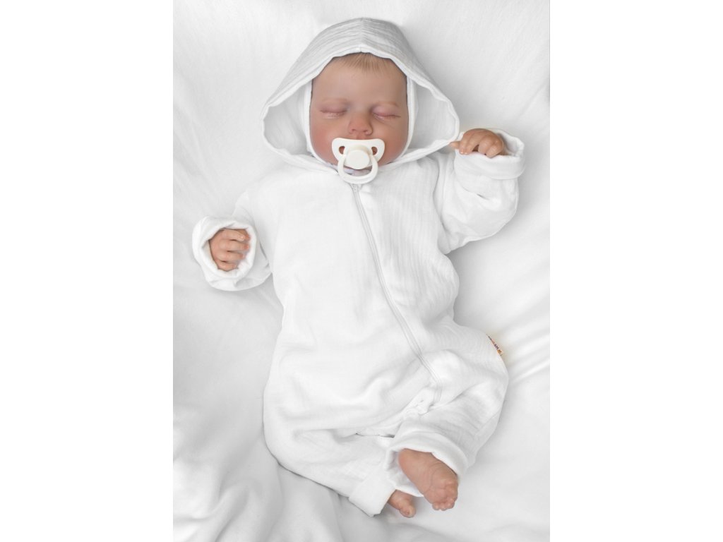 Mušelinový overálek s kapucí, dvouvrstvý, Hand Made, bílý