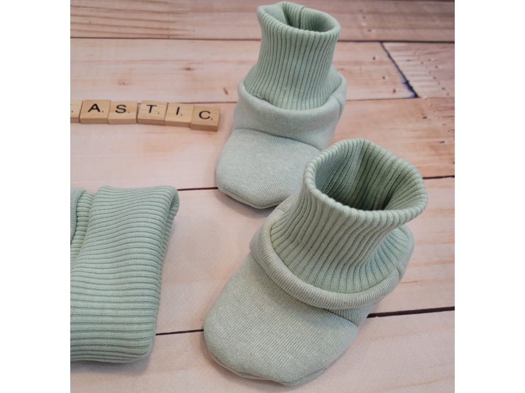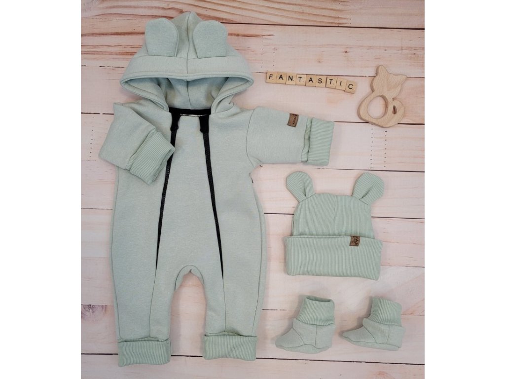 Oteplený dětský overal bez šlapek s kapucí, čepička + botičky, 3D, Kazum, mátový