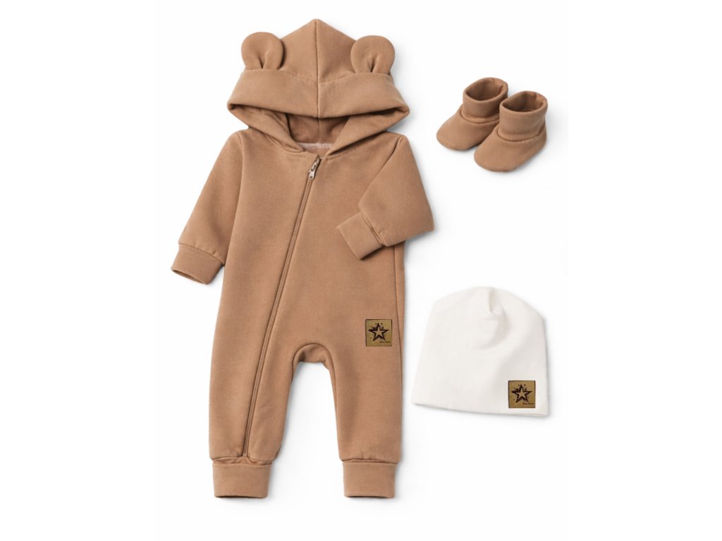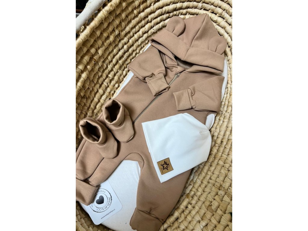 Rostoucí oteplený overál s čepičkou a botičkami, 3D - karamelový