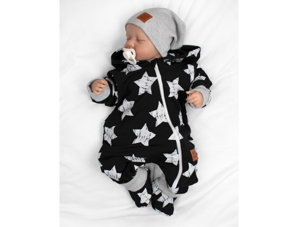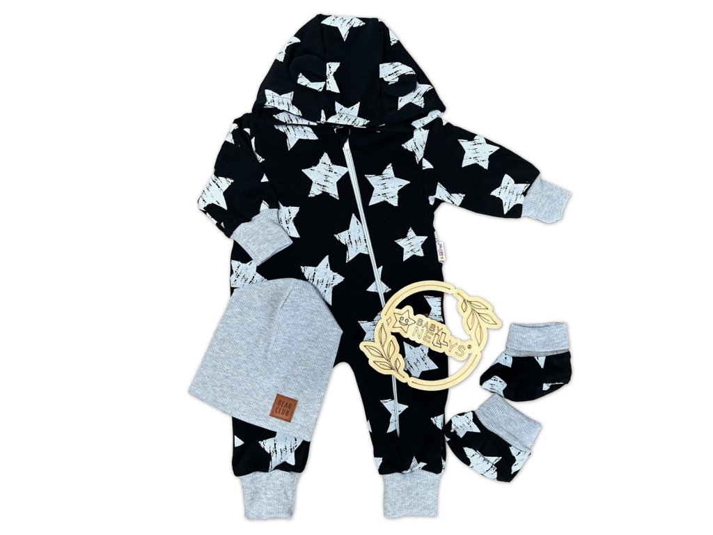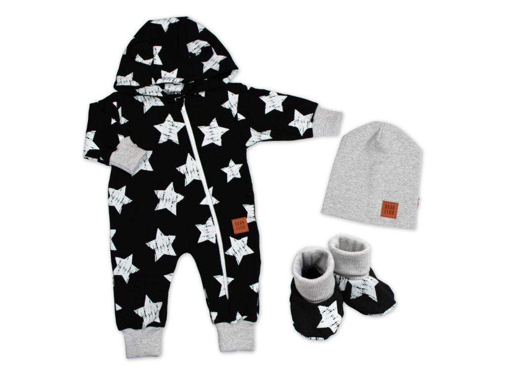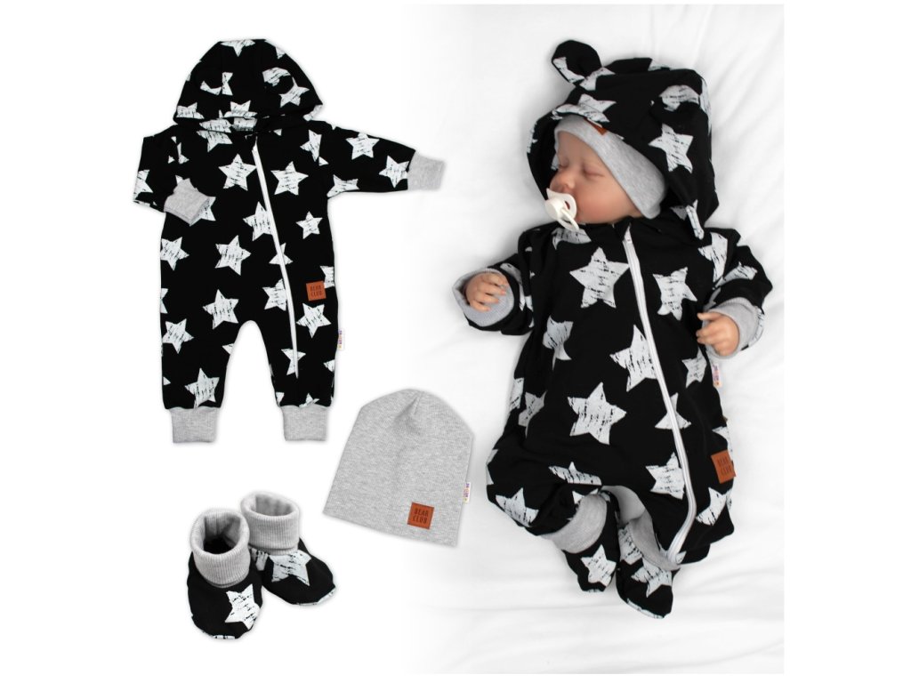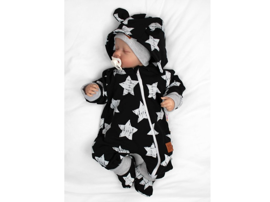 Rostoucí teplákový overal pro miminko, čepice, botky, 3D, Nature Star - černý