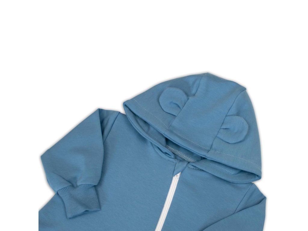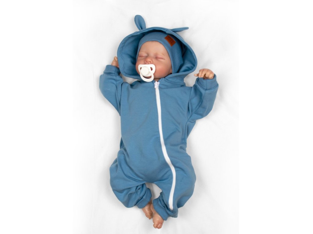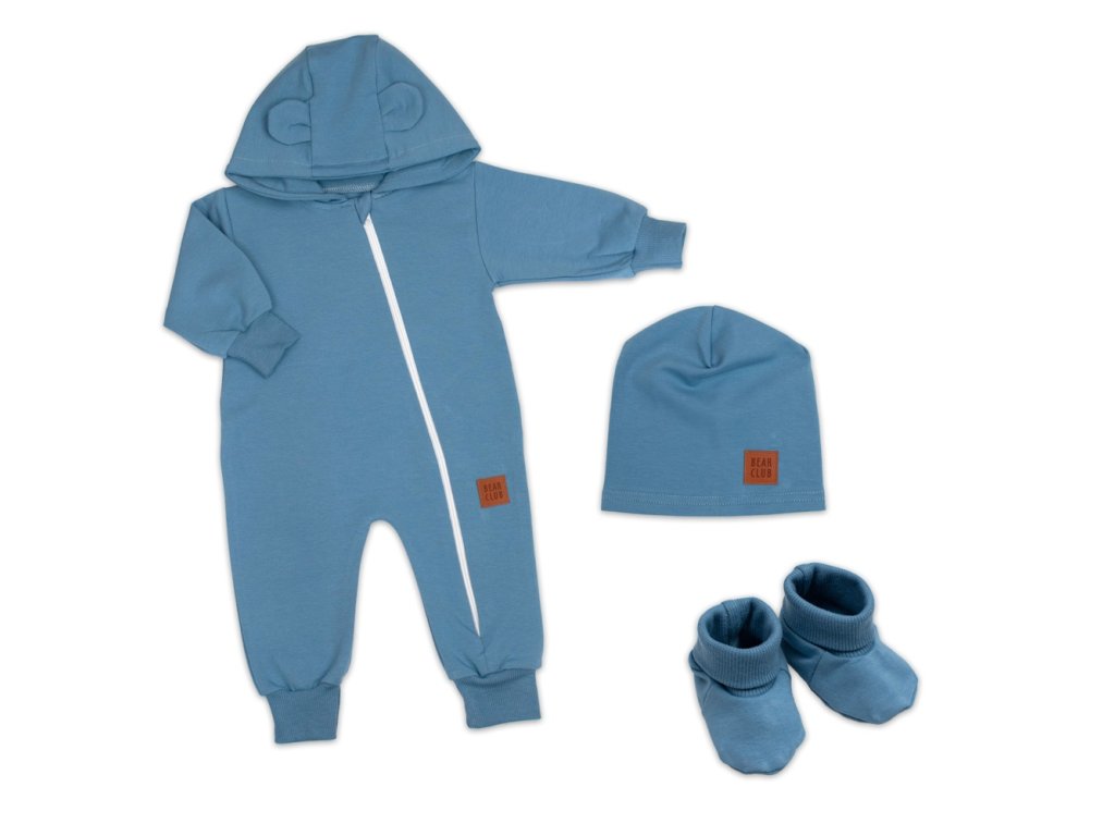 Rostoucí teplákový overal pro miminko, čepice, botky, 3D, Nature - tm. modrý