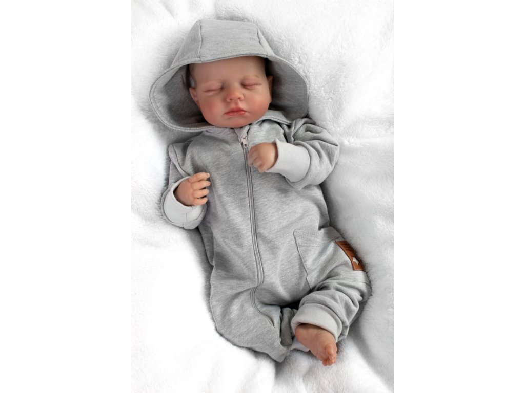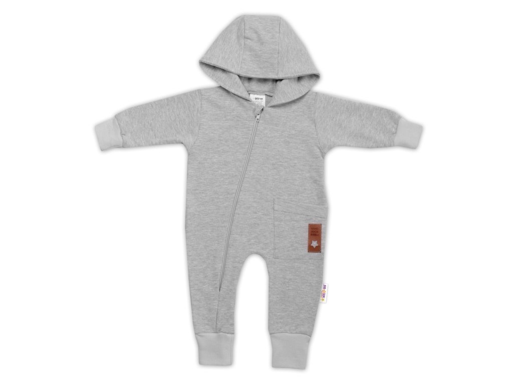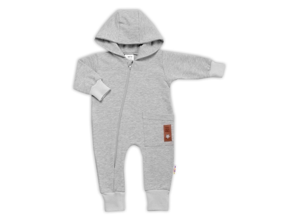 Teplákový overal s kapsičkou a kapucí BOY, Baby Nellys, šedý