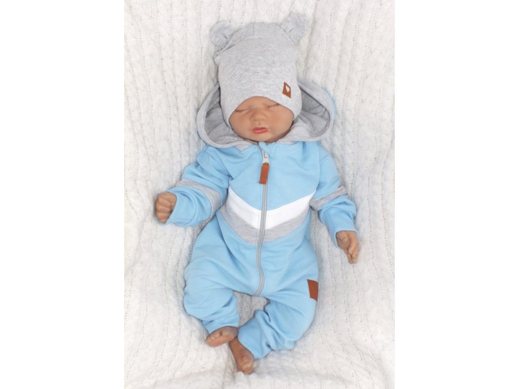 Z&Z Bavlněný kojenecký overal na zip s pruhy SPORT - modrý