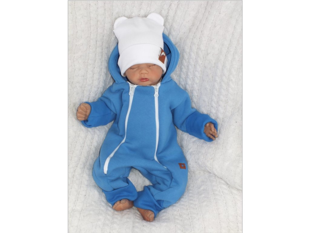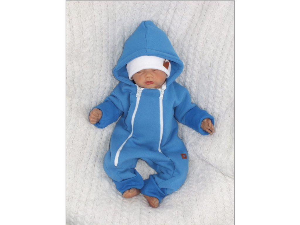 Z&Z Dětský teplákový dvouvrstvý rostoucí overálek s kapucí, modrý