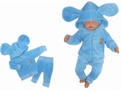 Z&Z Velurová, semišková tepláková souprava s oušky MYŠKA - sv. modrá