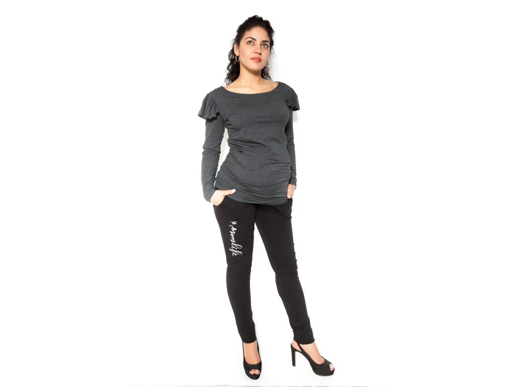 Be MaaMaa Těhotenské tepláky,kalhoty MOM life - černé