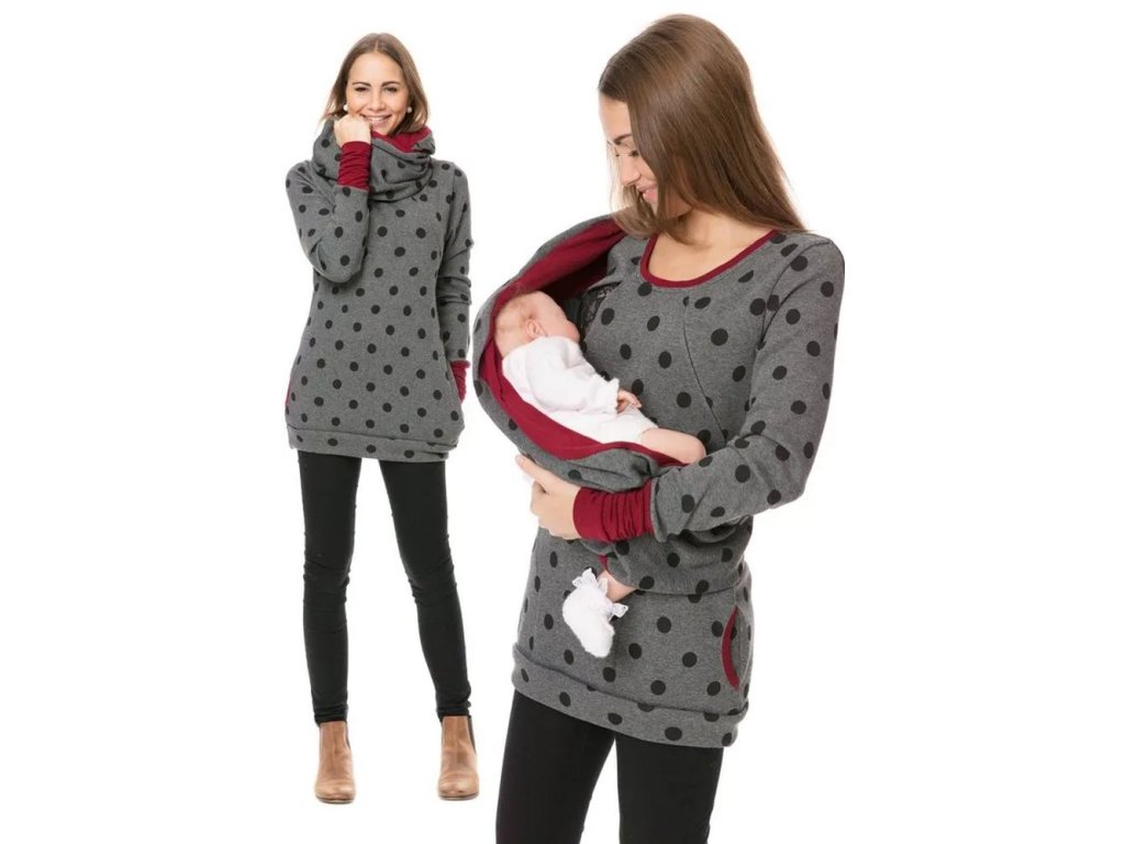 Multifunkční těhotenská/kojící mikina s nákrčníkem (klokaní kapsou)
